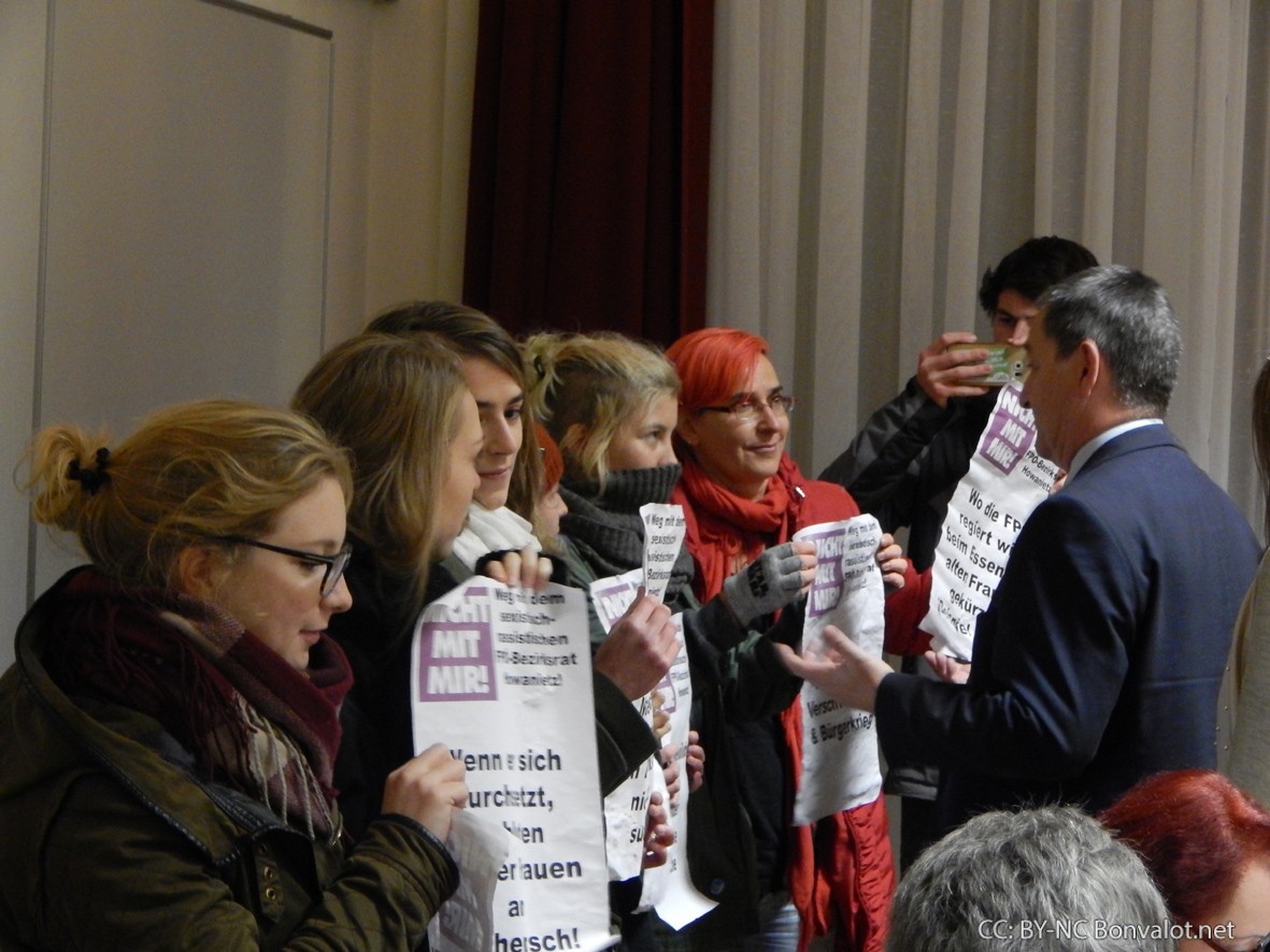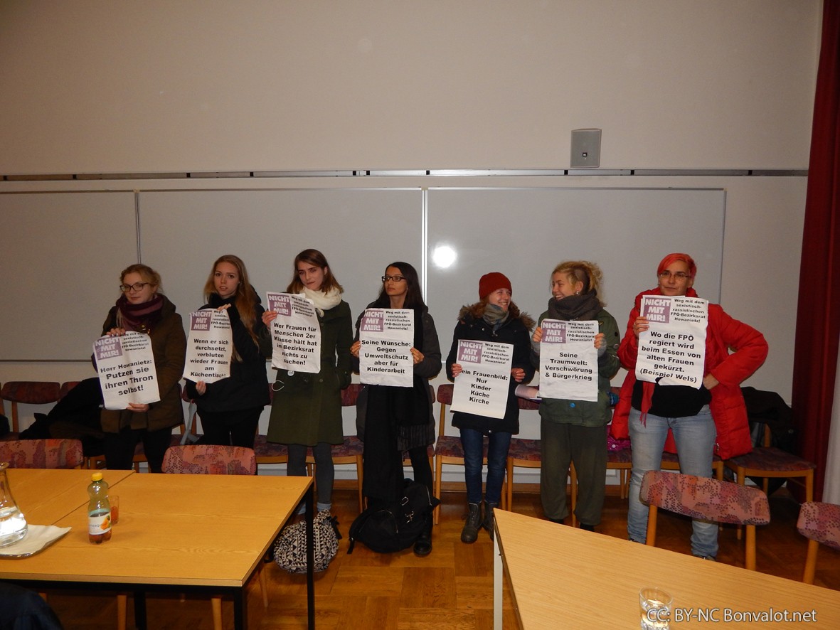 Die Sitzung der Bezirksvertretung am 16. November nahm die feministische Initiative „Nicht mit mir“ mit Unterstützung des „Aufbruch“ zum Anlass für eine Protestaktion. Auftakt war eine Kundgebung vor der Bezirksvorstehung, danach betraten sieben Aktivistinnen den Saal und hielten Plakate gegen Howanietz und die FPÖ in die Höhe.