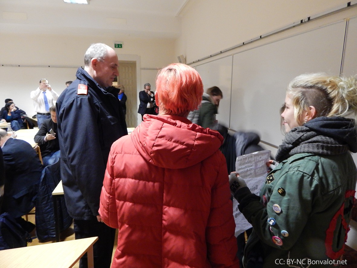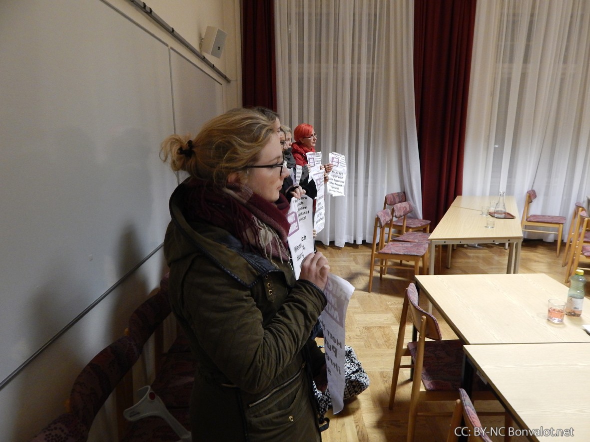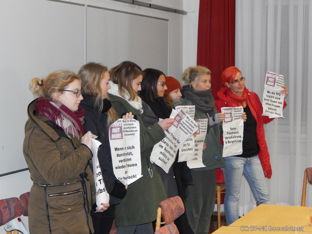Während der Störaktion hielt sich Michael Howanietz (im karierten blauen Hemd mit Brille) im Hintergrund, es war ihm auch auch sichtbar unangenehm, fotografiert zu werden.