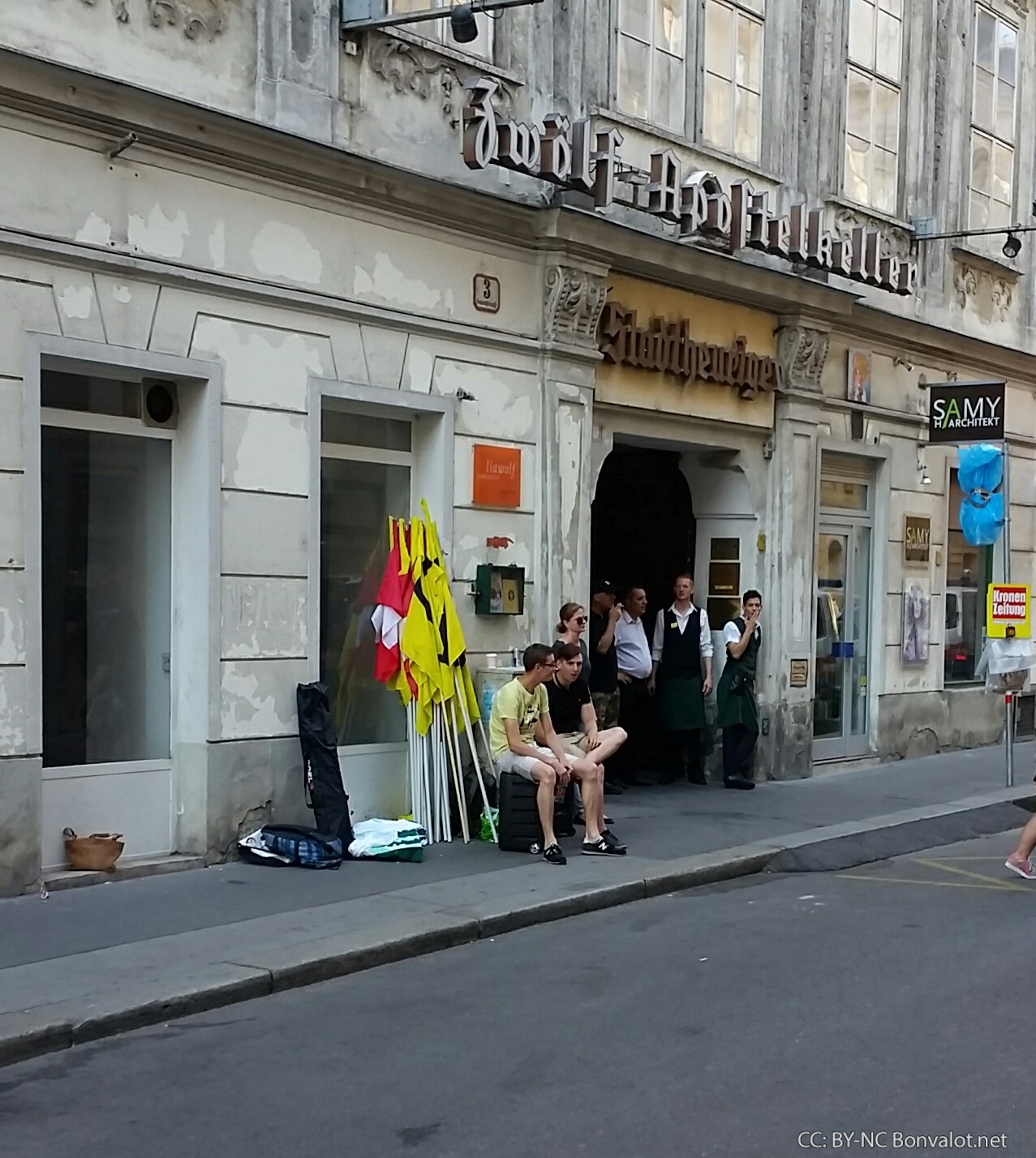 Der Kundgebungsort wurde allerdings polizeilich untersagt, so fand die Kundgebung rund 50 Meter weiter in der Sonnenfelsgasse, einer kleinen Nebenstraße der zentralen Rotenturmstraße, statt. Motto der IB-Kundgebung war „Schluss mit Erdogan-Demos in Wien“, eine weitere zentrale Forderung die „Remigration“, also die Deportation von Menschen, die nach Österreich immigriert sind und hier leben.