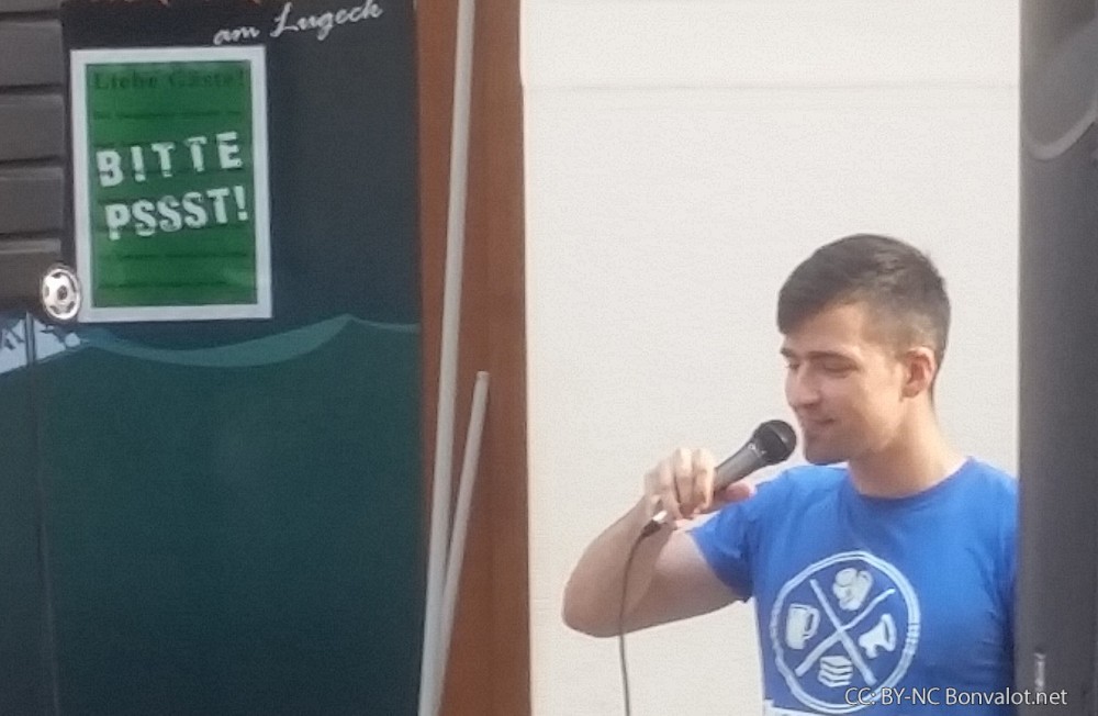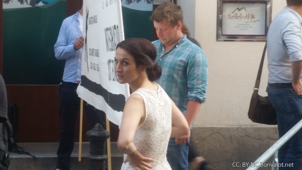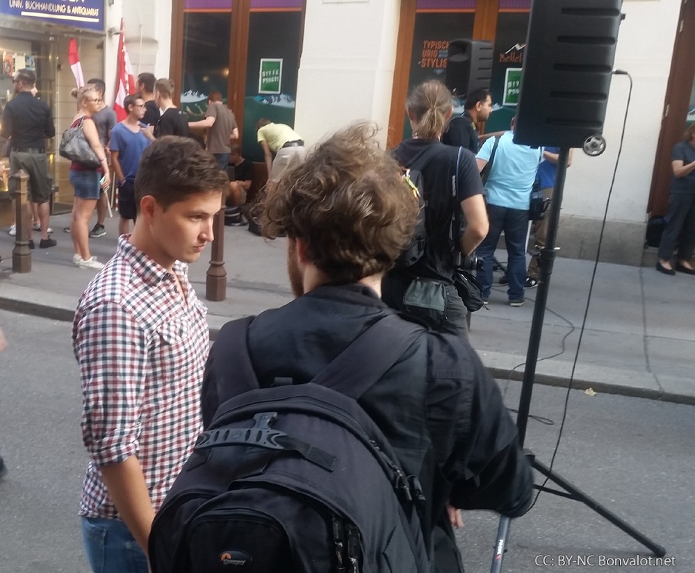 Gegen Ende der Kundgebung wurde schließlich noch ein Transparent aufgespannt, das zuvor an einer Hauswand gelehnt war. Dennoch hefteten sich die Kameras der zahlreich vorhandenen JournalistInnen sofort auf das Transparent, als es angekündigt und dann präsentiert wurde. Eine weitere Debatte um den Umgang mit Bildsprache und Medieninszenierung wäre hier sicherlich wünschenswert.