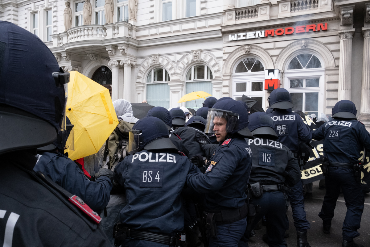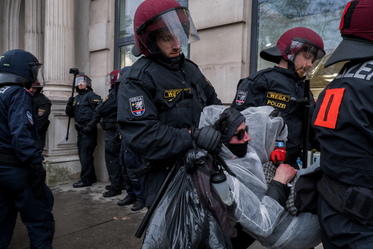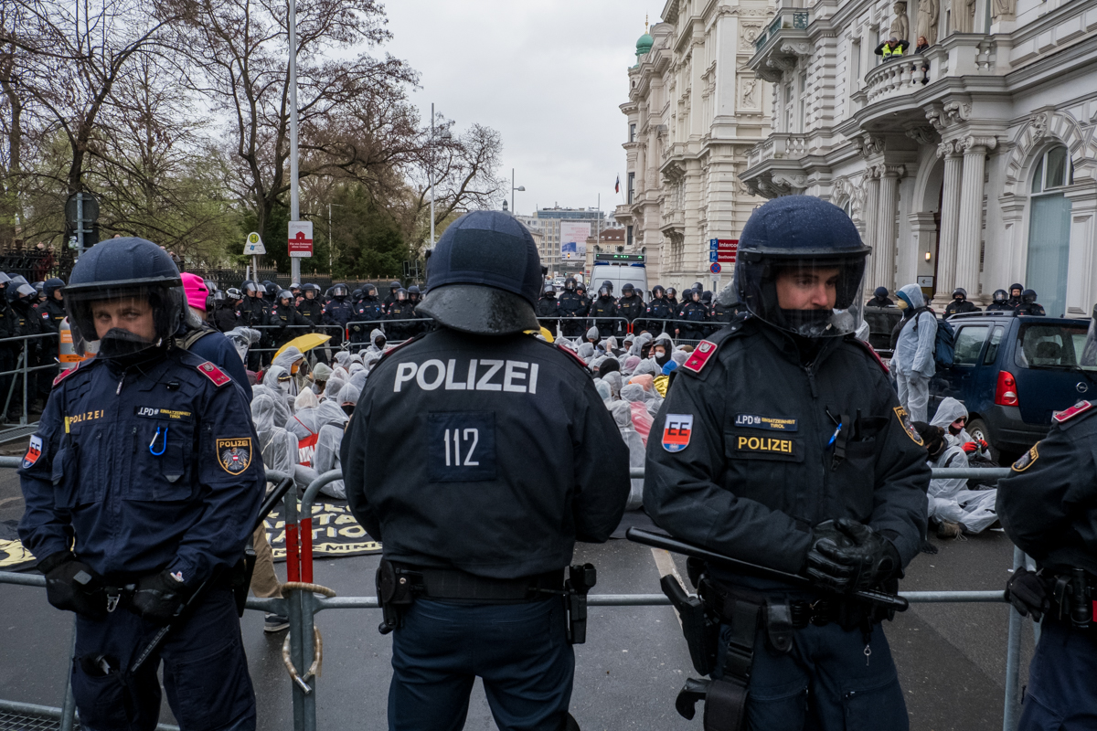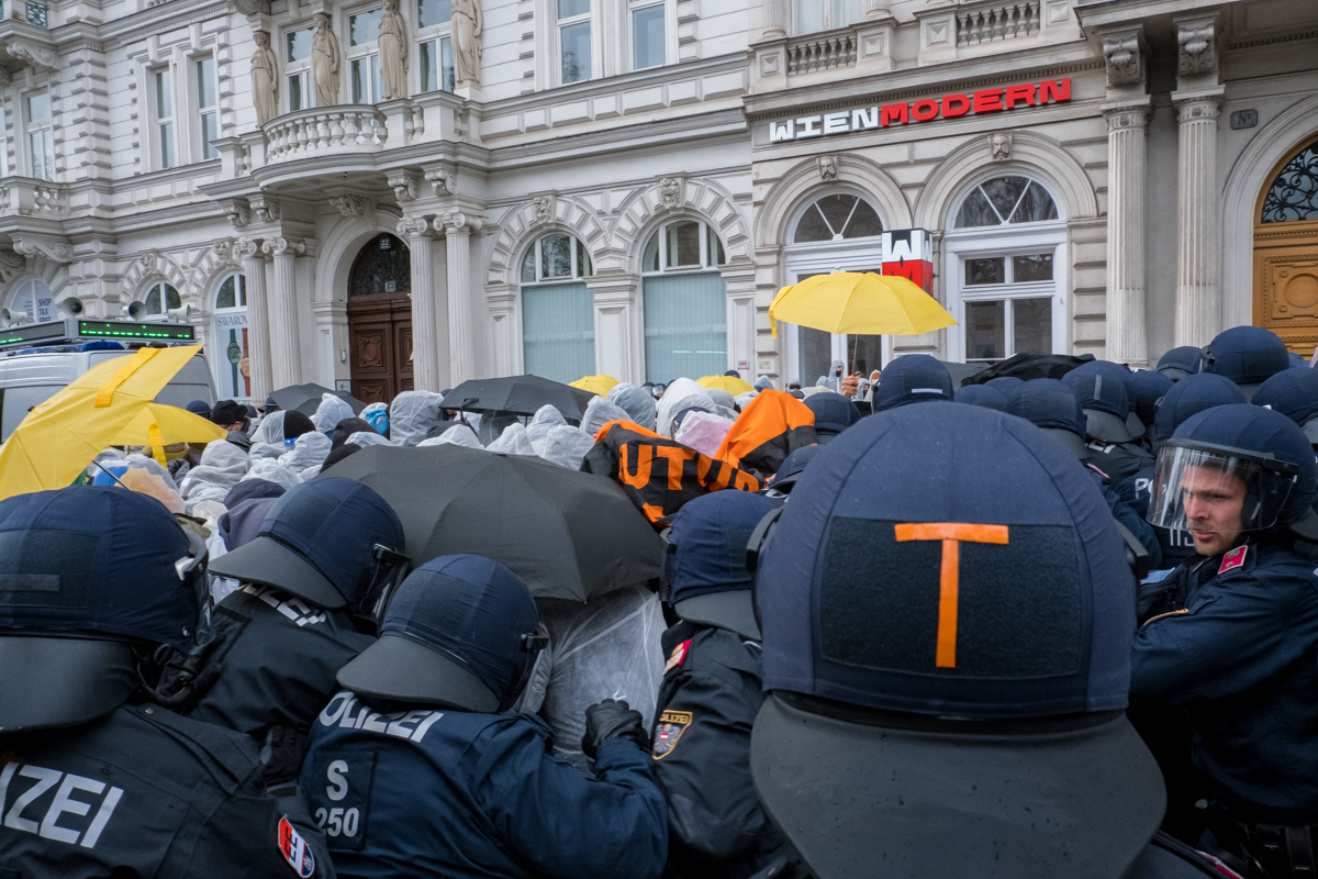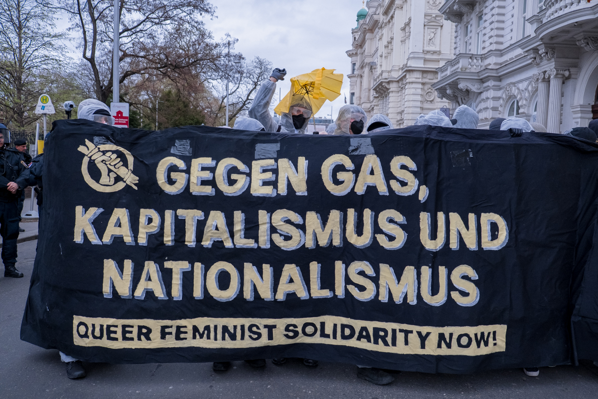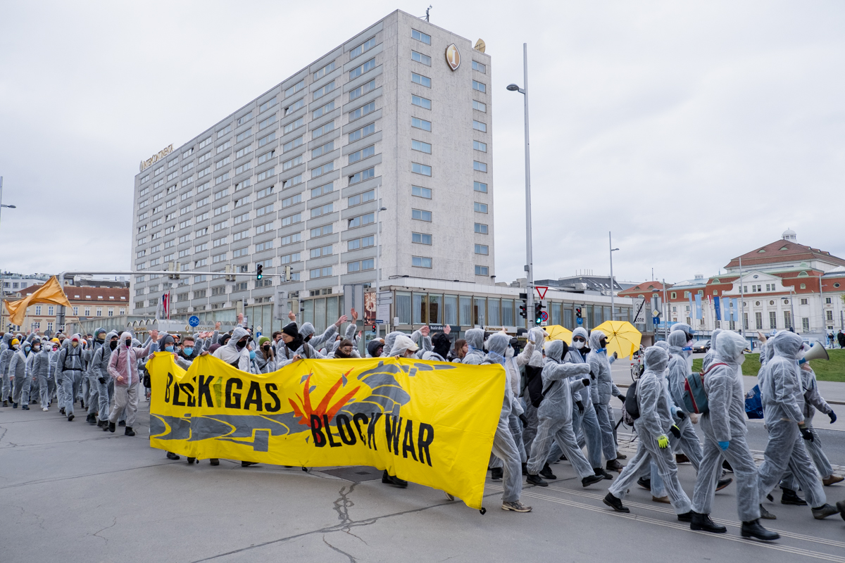 Klimaschützer:innen protestieren gegen die Gaskonferenz der Energie-Konzerne in Wien. Das sind die Bilder von den Protesten vor dem Hotel Marriot und von der Blockade der OMV!