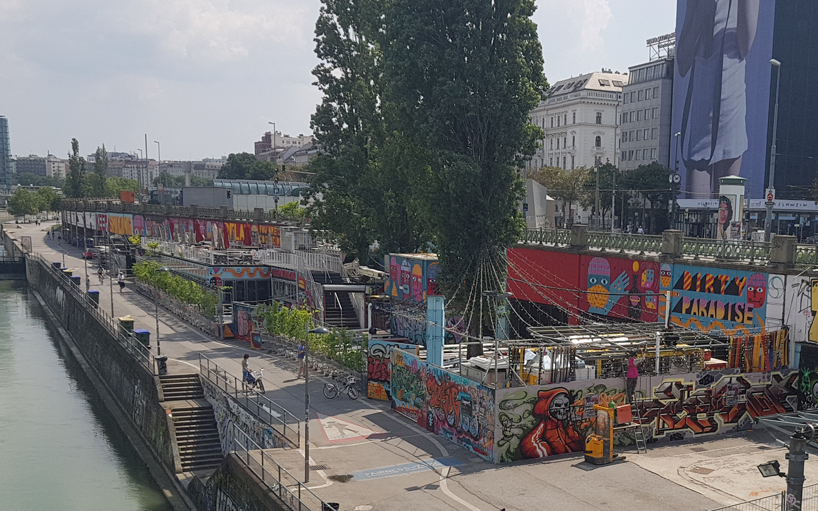 [Erstveröffentlichung: Noisey/Vice, 08.08.2018] An einem sonnigen Tag kann es schon mal eng werden am Wiener Donaukanal. Menschen gehen spazieren, andere machen Sport, viele sitzen einfach nur mit Freund:innen entspannt in einem Lokal oder am Ufer. Hin und wieder kommt jemand vorbei und bietet billige Getränke an. Es ist eindeutig: Das Bild des Donaukanals hat sich gewandelt. Wo es vor einigen Jahren noch nach Pisse stank und der Müll herum lag, hat sich inzwischen einer der angenehmsten und trendigsten Plätze der Stadt entwickelt.