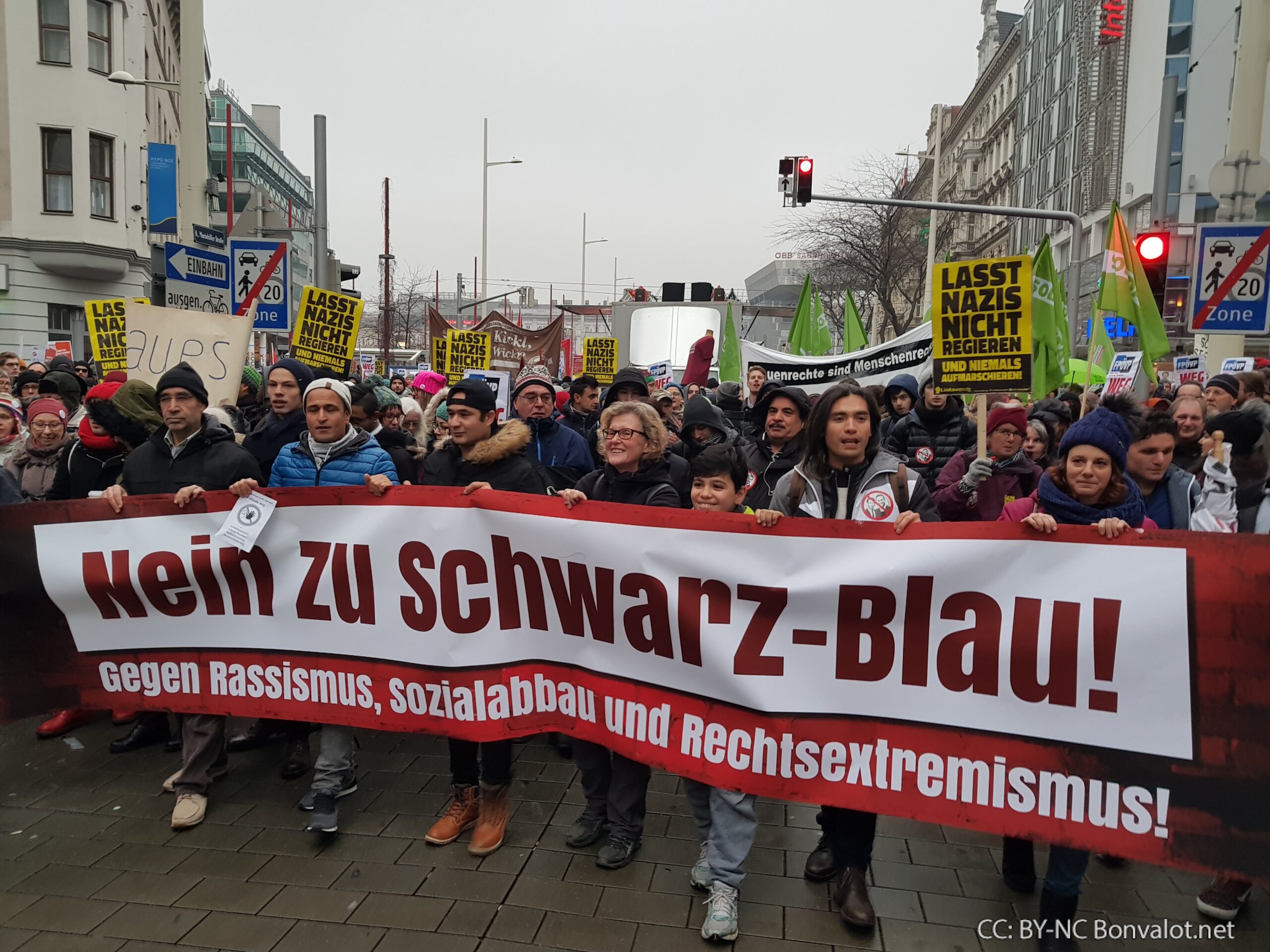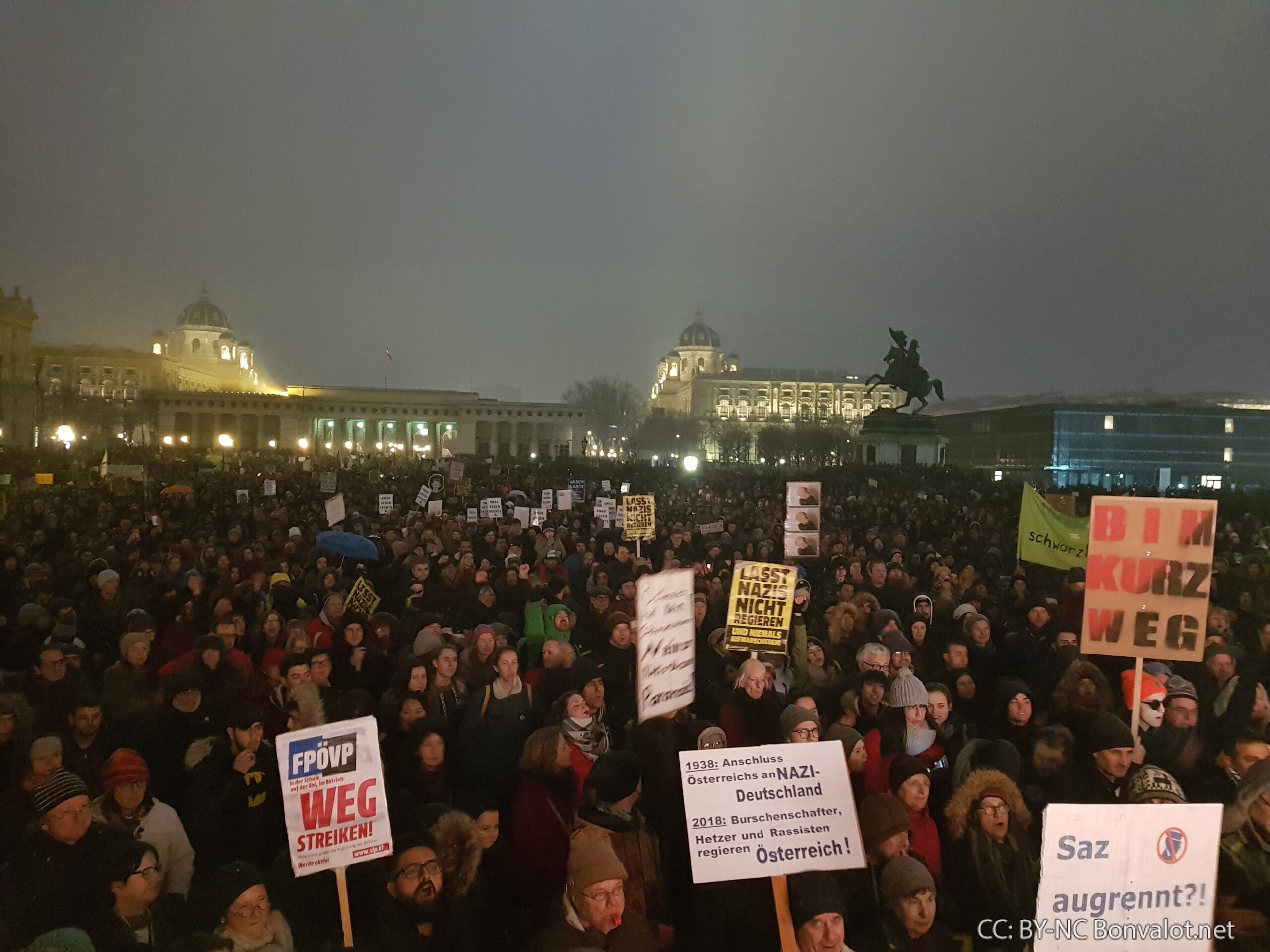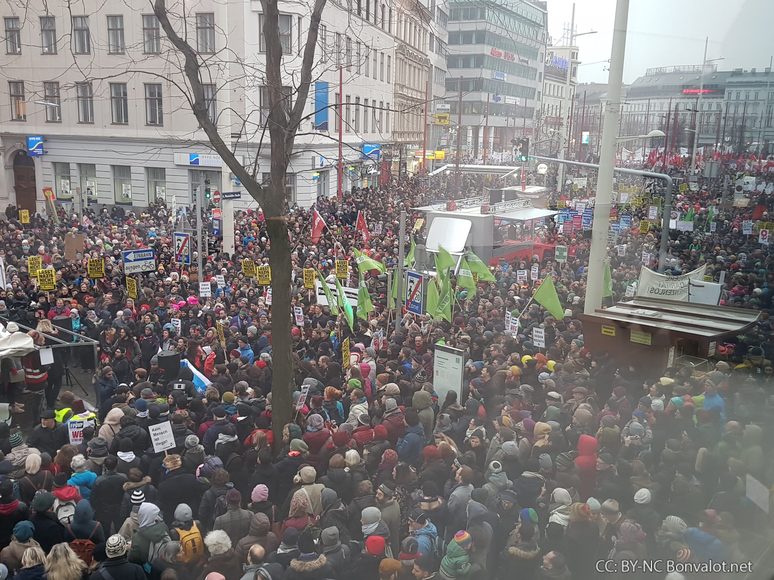 Es war ein starkes Lebenszeichen der Bewegung gegen schwarz-blau. Nach Angaben der Organisatoren demonstrierten am Samstag Nachmittag in Wien bis zu 70.000 Menschen beim „Neujahrsempfang“ gegen ÖVP und FPÖ.