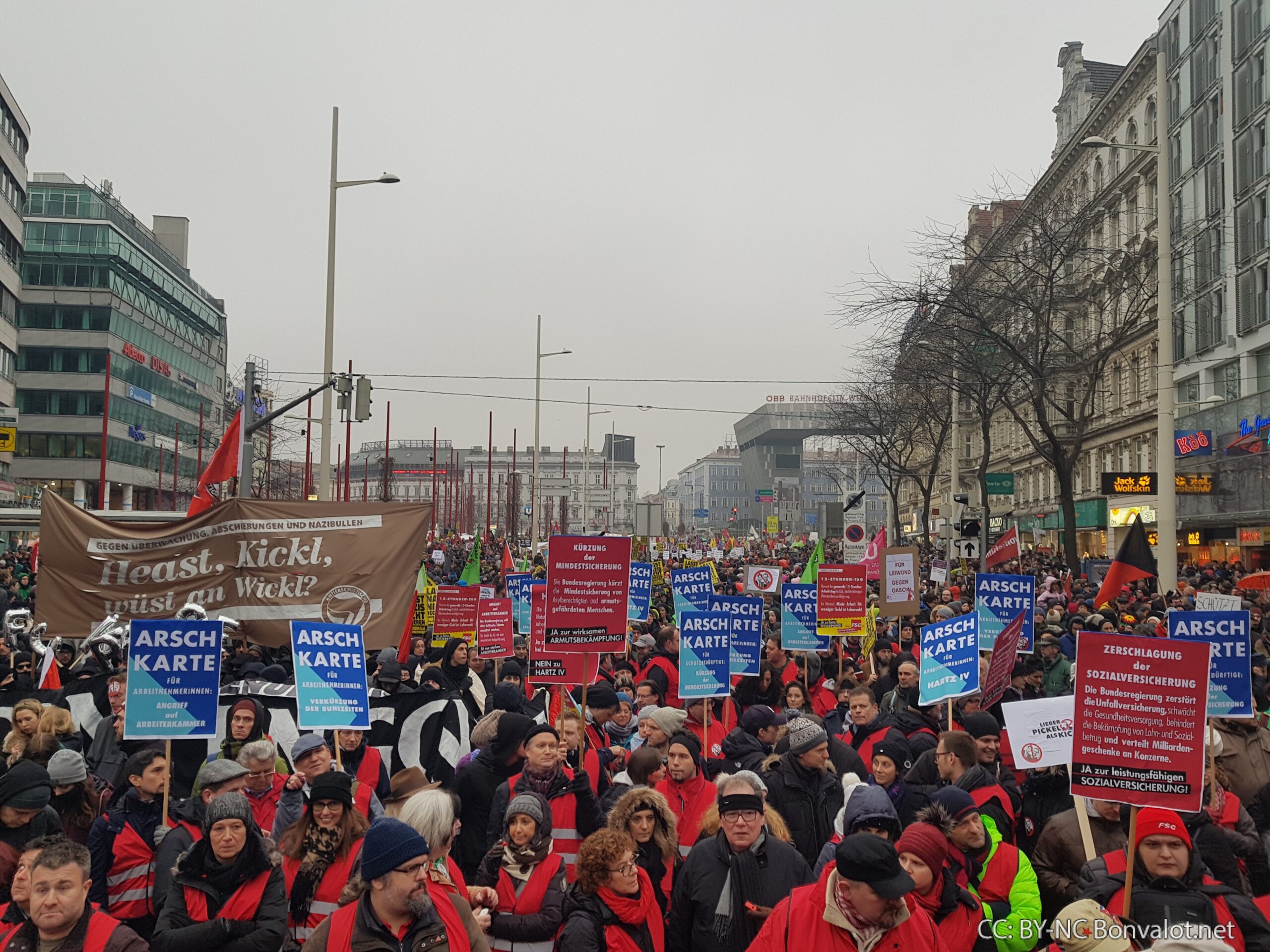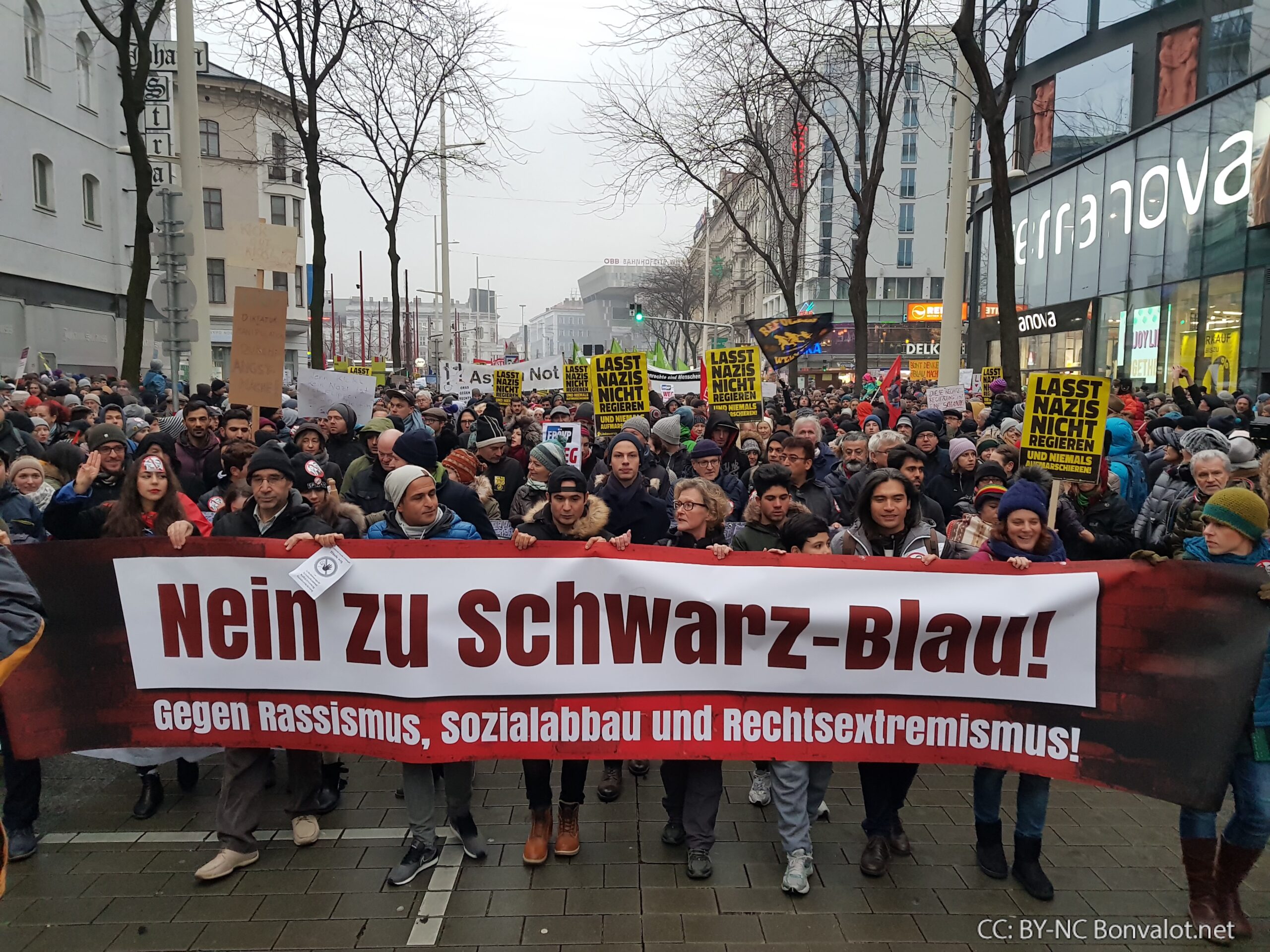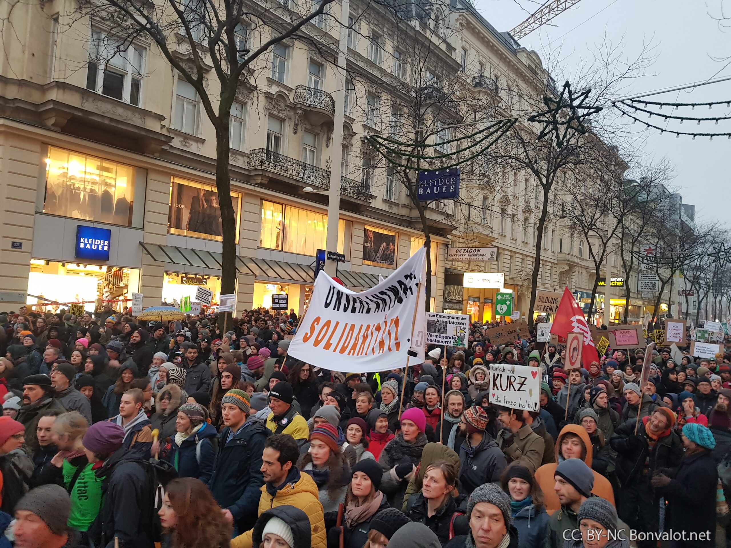Es war ein starkes Lebenszeichen der Bewegung gegen schwarz-blau. Nach Angaben der Organisatoren demonstrierten am Samstag Nachmittag in Wien bis zu 70.000 Menschen beim „Neujahrsempfang“ gegen ÖVP und FPÖ.