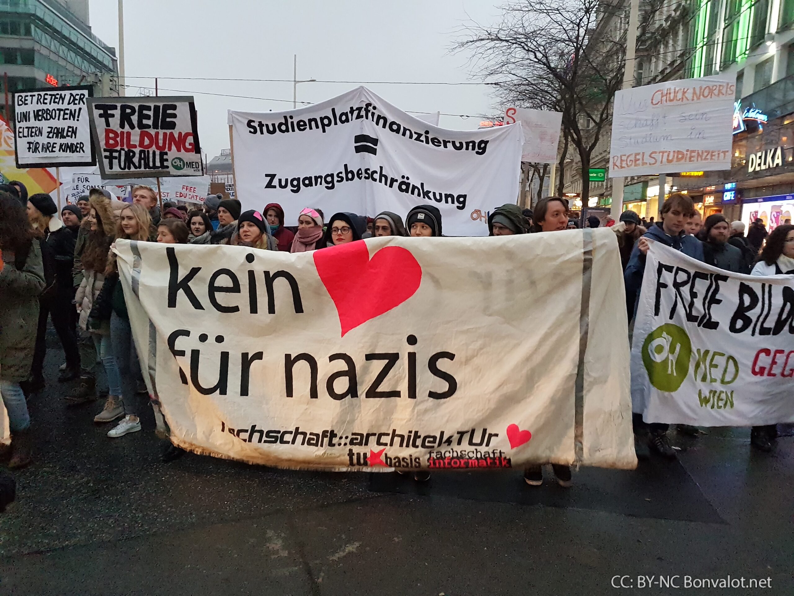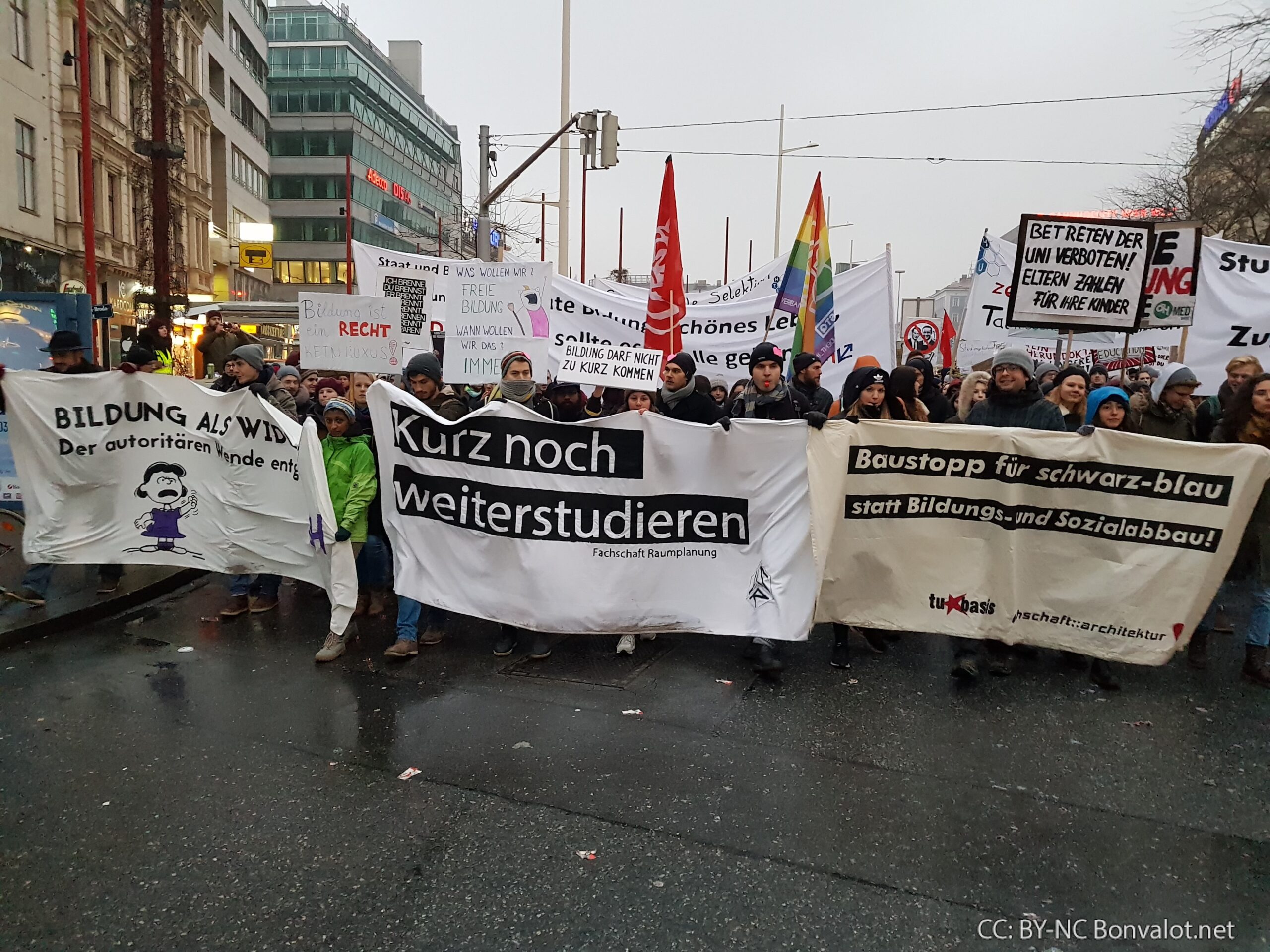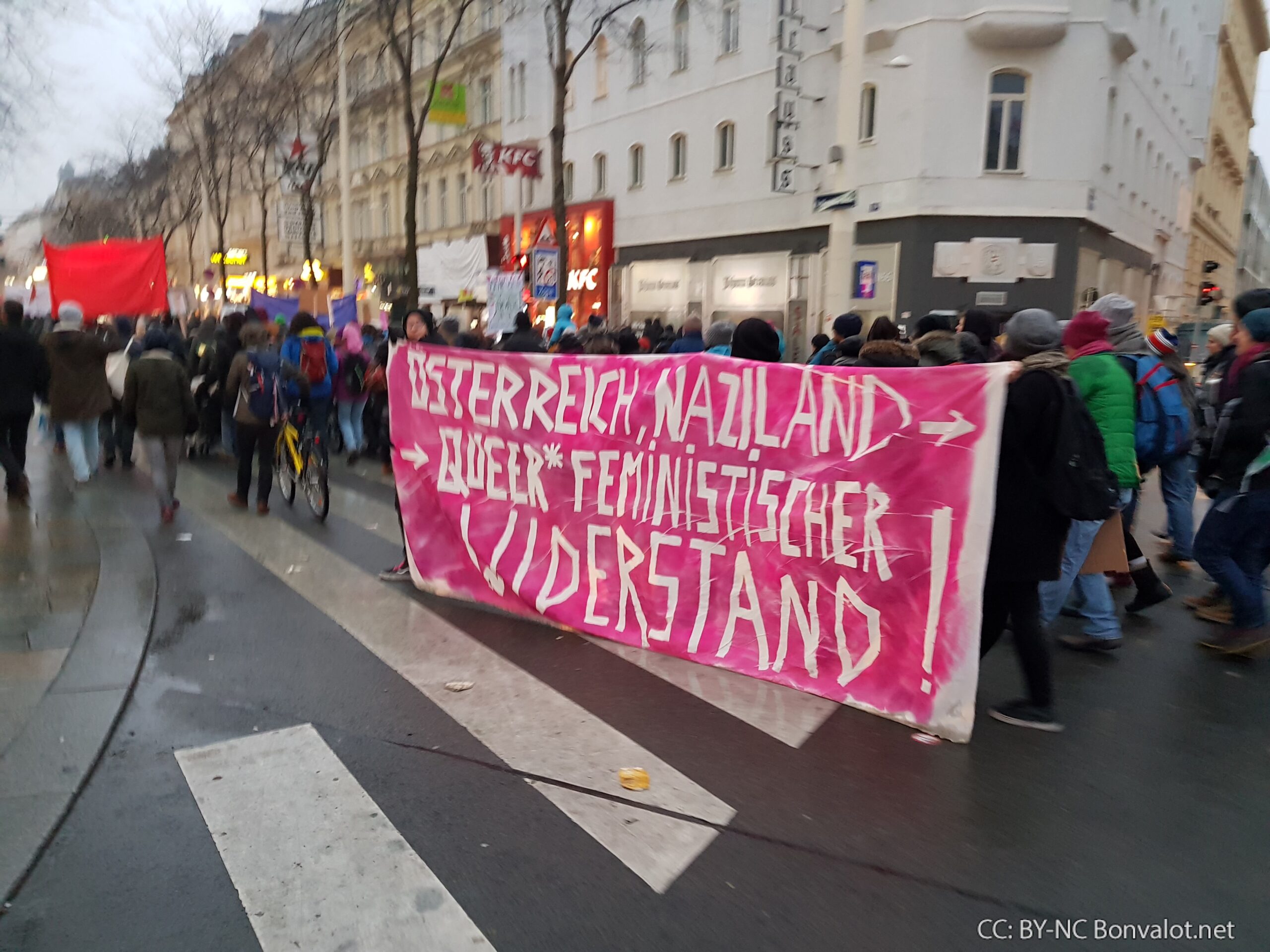 Die Auftakt-Kundgebung zur Demonstration begann gegen 14:00 Uhr beim Wiener Westbahnhof, gegen 15:00 Uhr marschierte die Spitze der Demo schließlich los. Als gegen 16:20 Uhr die ersten Teile der Demo den Schlusspunkt am Heldenplatz erreichten, waren die letzten DemonstrantInnen noch nicht einmal vom Westbahnhof los gegangen.