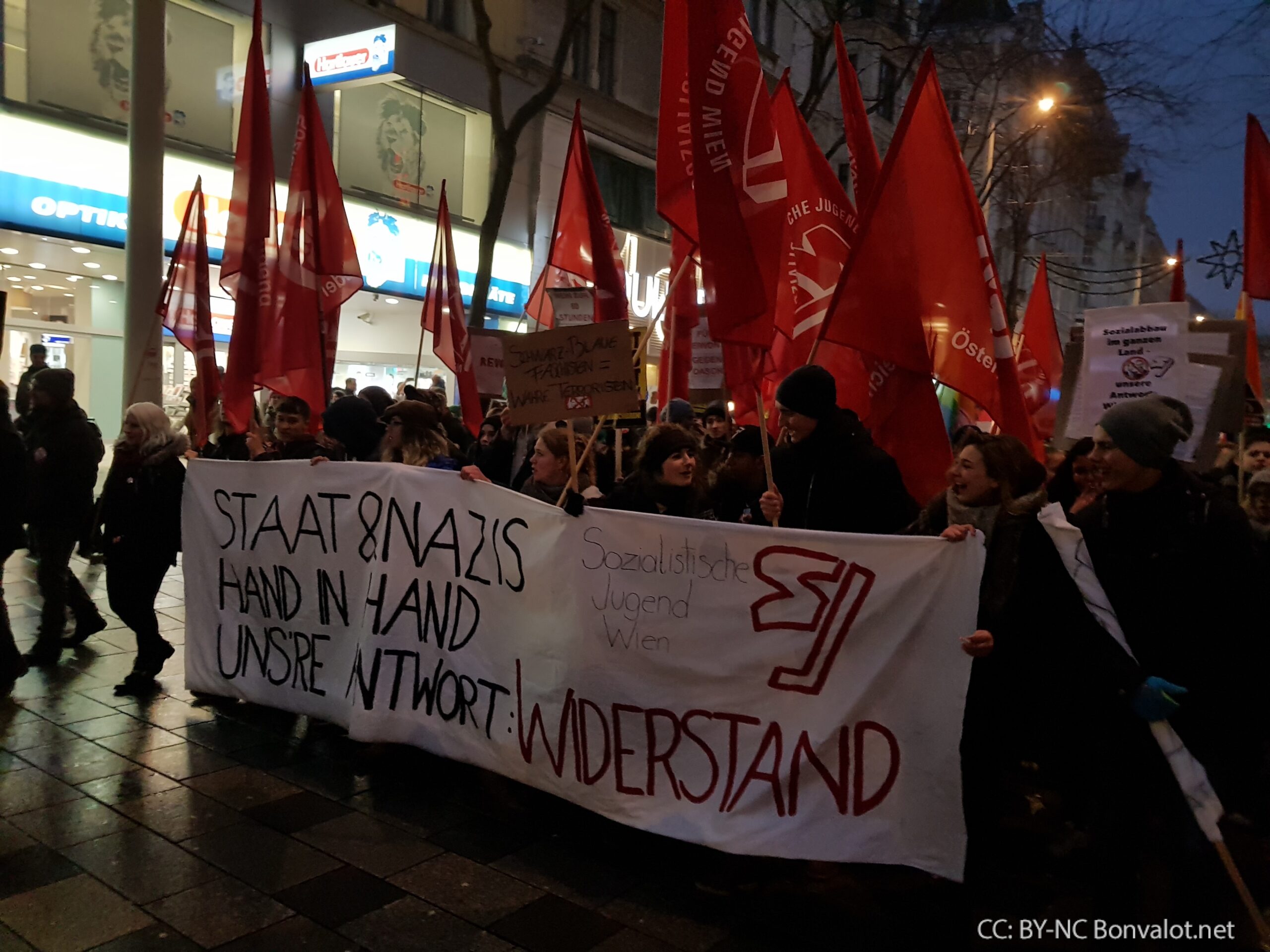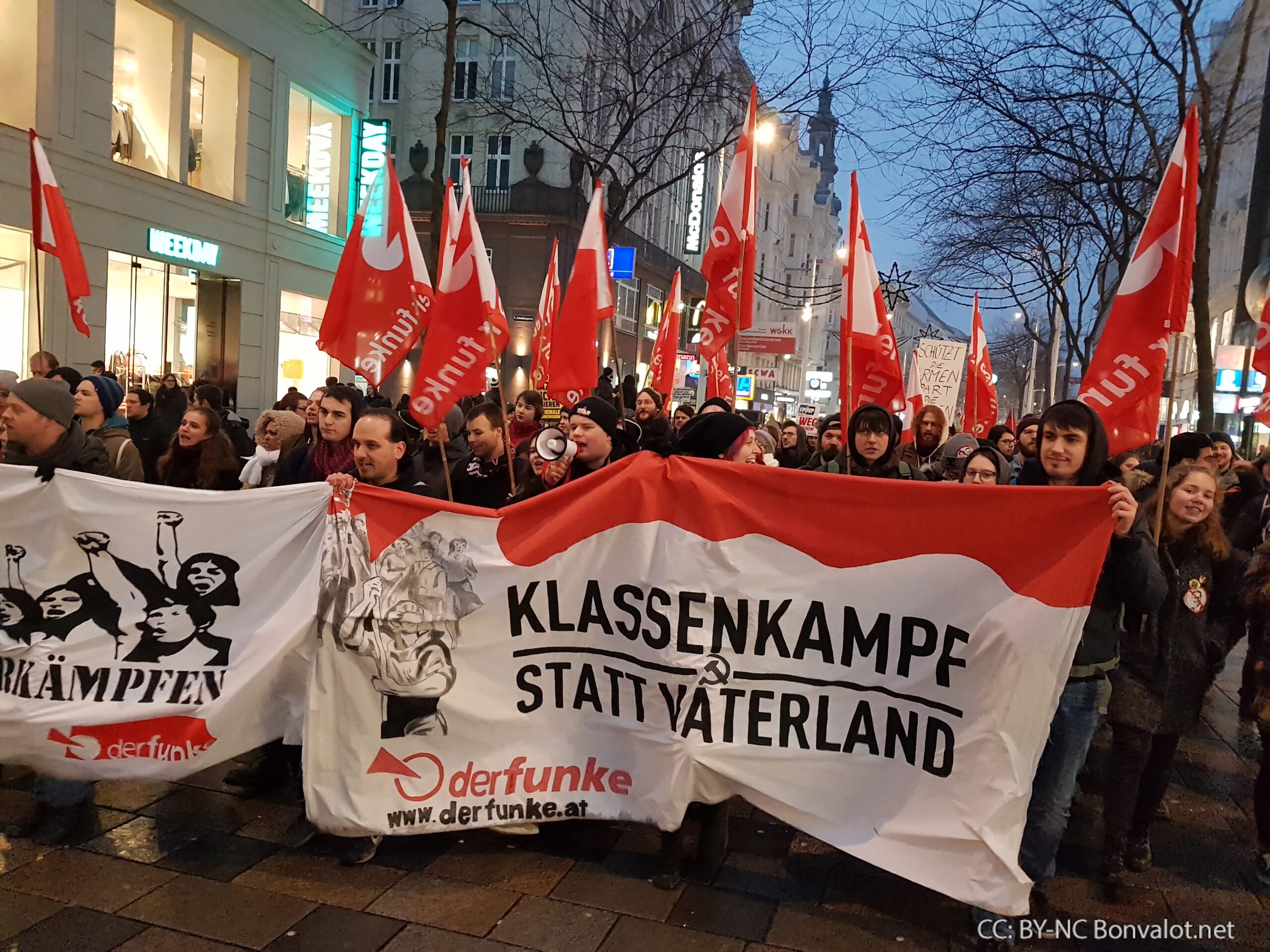 Die Kundgebung am Heldenplatz endete nach zahlreichen teils sehr kämpferischen Redebeiträgen mit den Worten „Hoch die internationale Solidarität“ sowie dem Lied „Bella Ciao“.