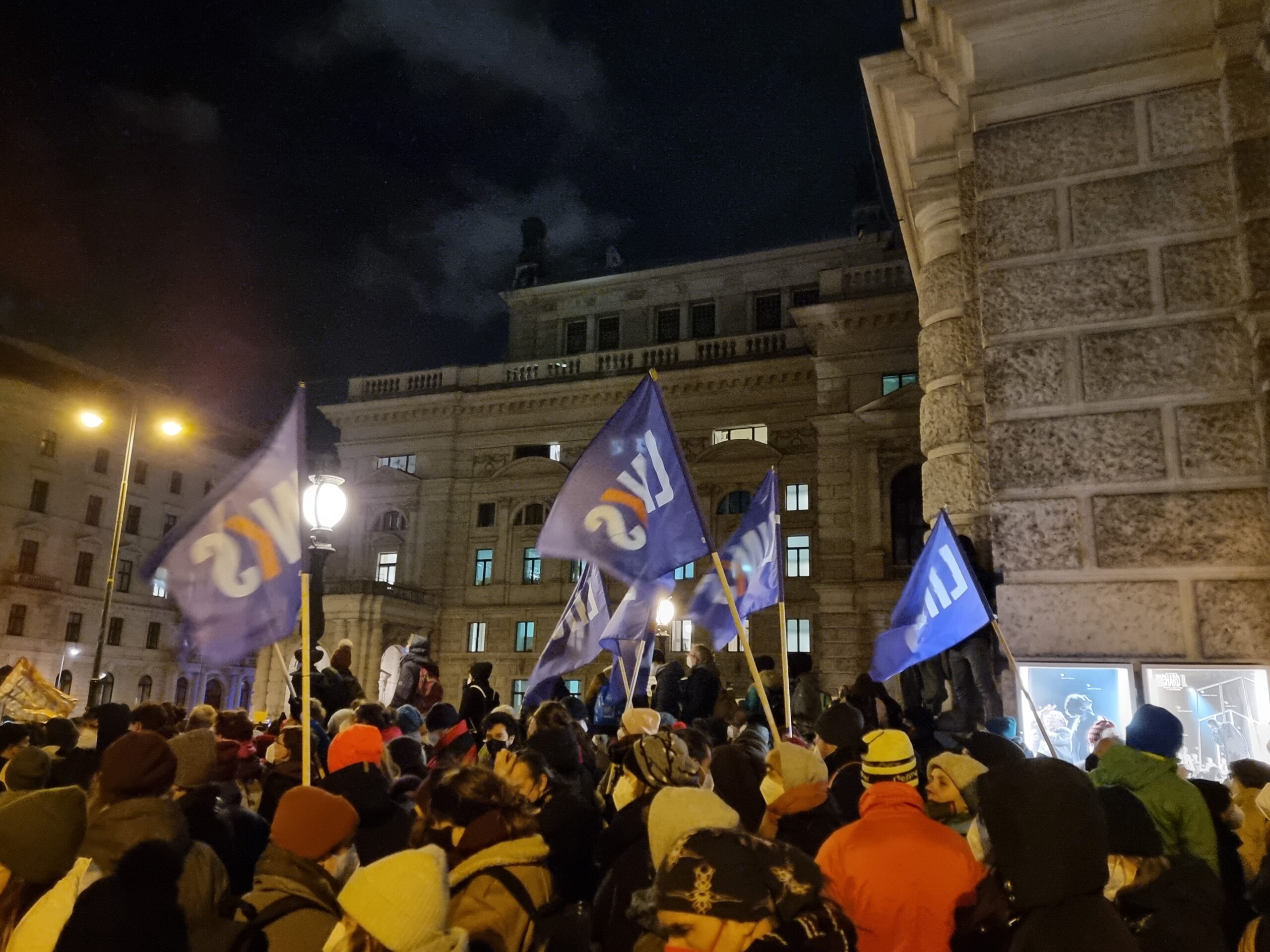„Lobau bleibt“ und „Wir sind nicht alle, es fehlen die Gefangenen“ – Rund 1500 Menschen haben am Dienstag Abend vor der Zentrale der SPÖ gegen die Räumung des Lobau-Camps und für die Freilassung verhafteter Aktivist*innen demonstriert. Die gut mobilisierte Demo, zu der nur wenige Stunden zuvor aufgerufen worden war, war damit gleichzeitig ein deutliches Signal, dass der Widerstand gegen die Stadtautobahn und den Lobautunnel auch nach der Räumung des Camps in der Hausfeldstraße weitergehen wird. Hier findet ihr eine Vor-Ort-Reportage, was bei der Räumung alles passiert ist.