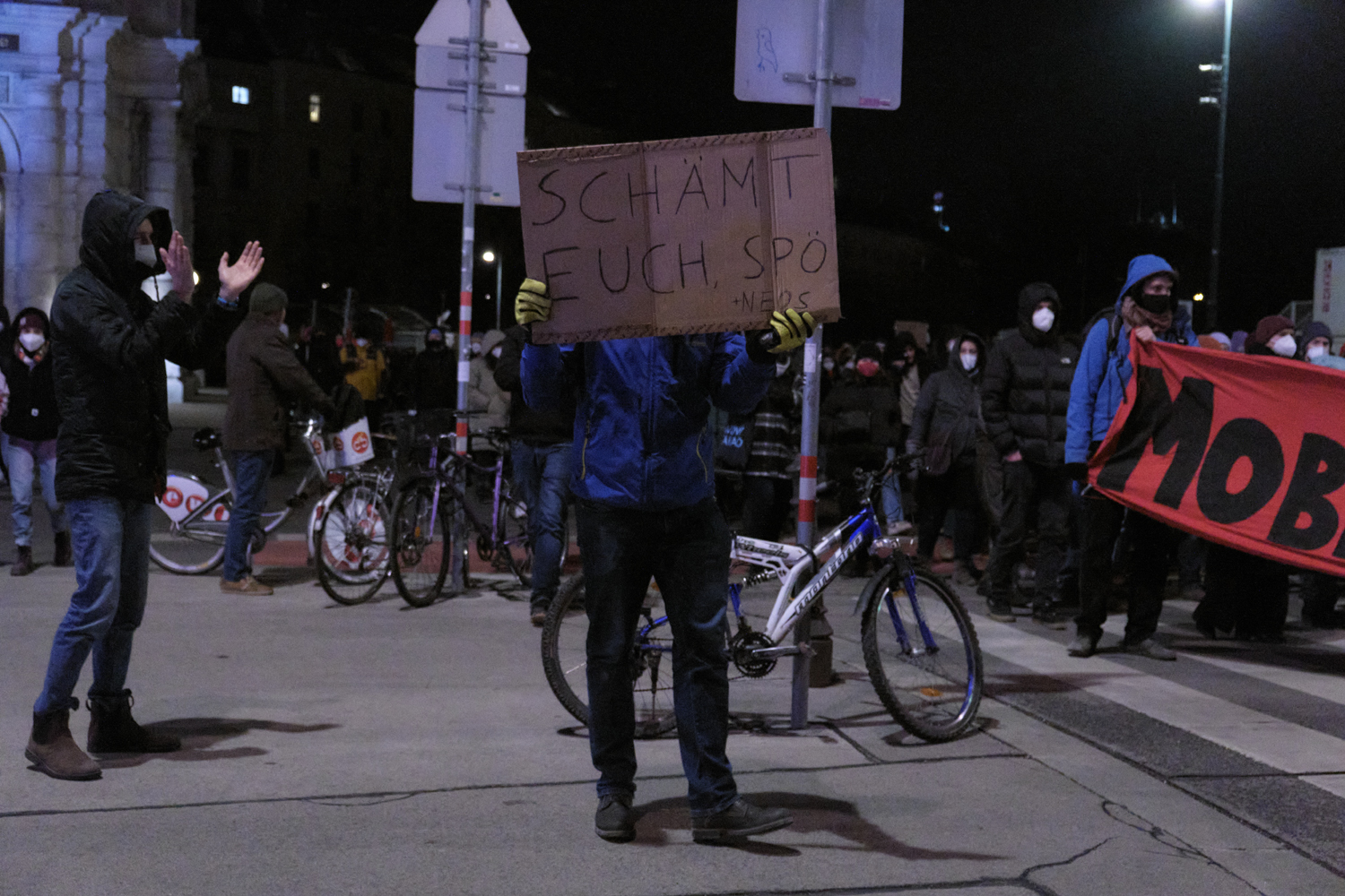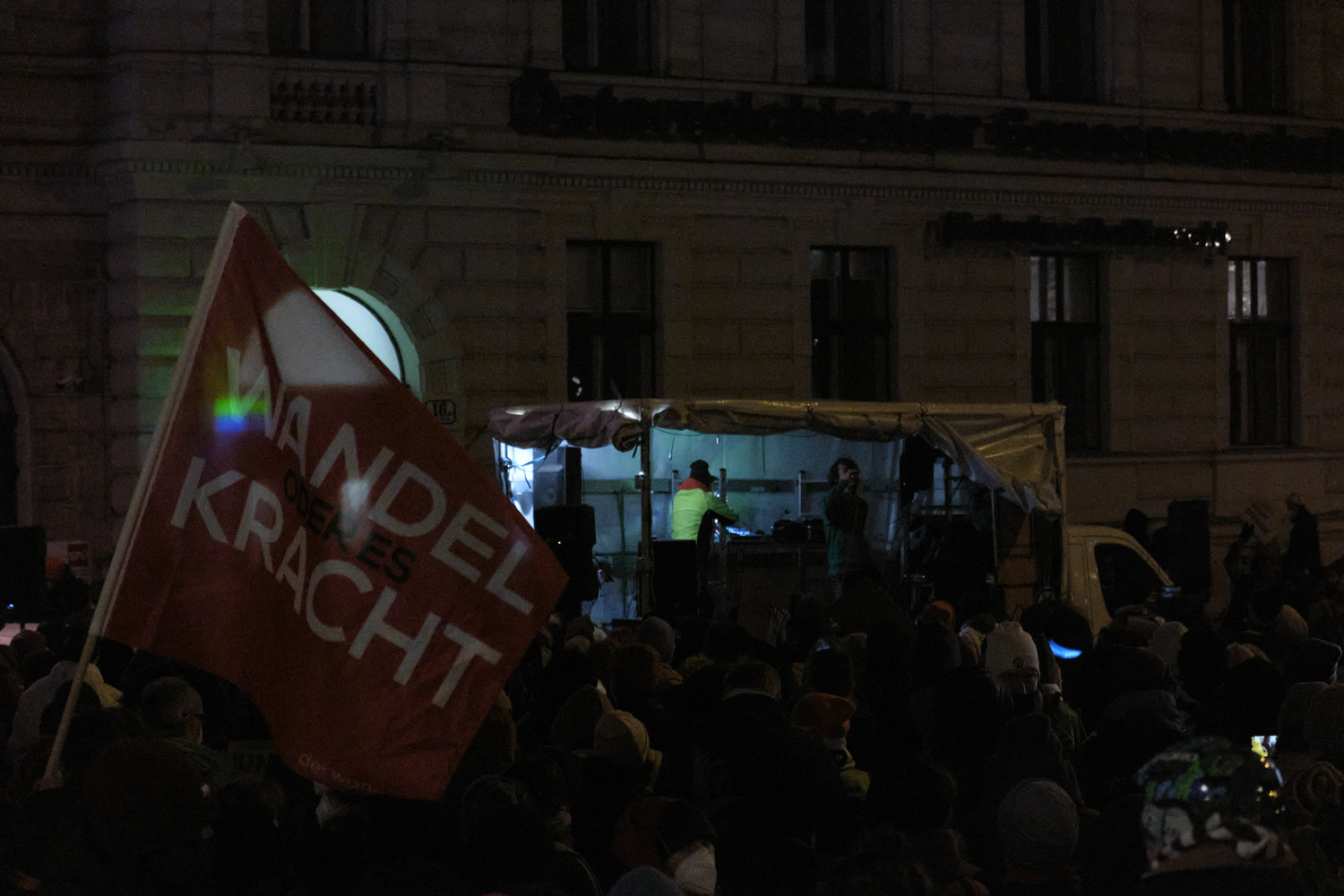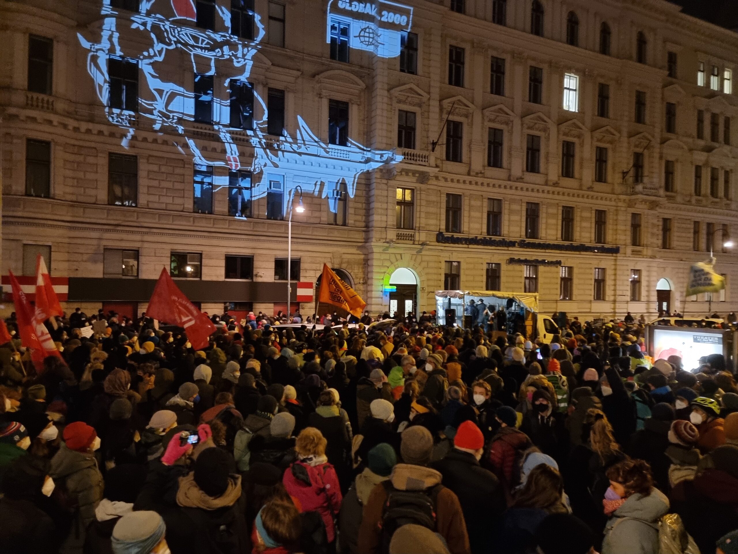 Rund 1500 Menschen haben vor der SPÖ-Zentrale gegen die Räumung des Klimacamps demonstriert. Eine Bildreportage von Marie E. Mark und Michael Bonvalot.