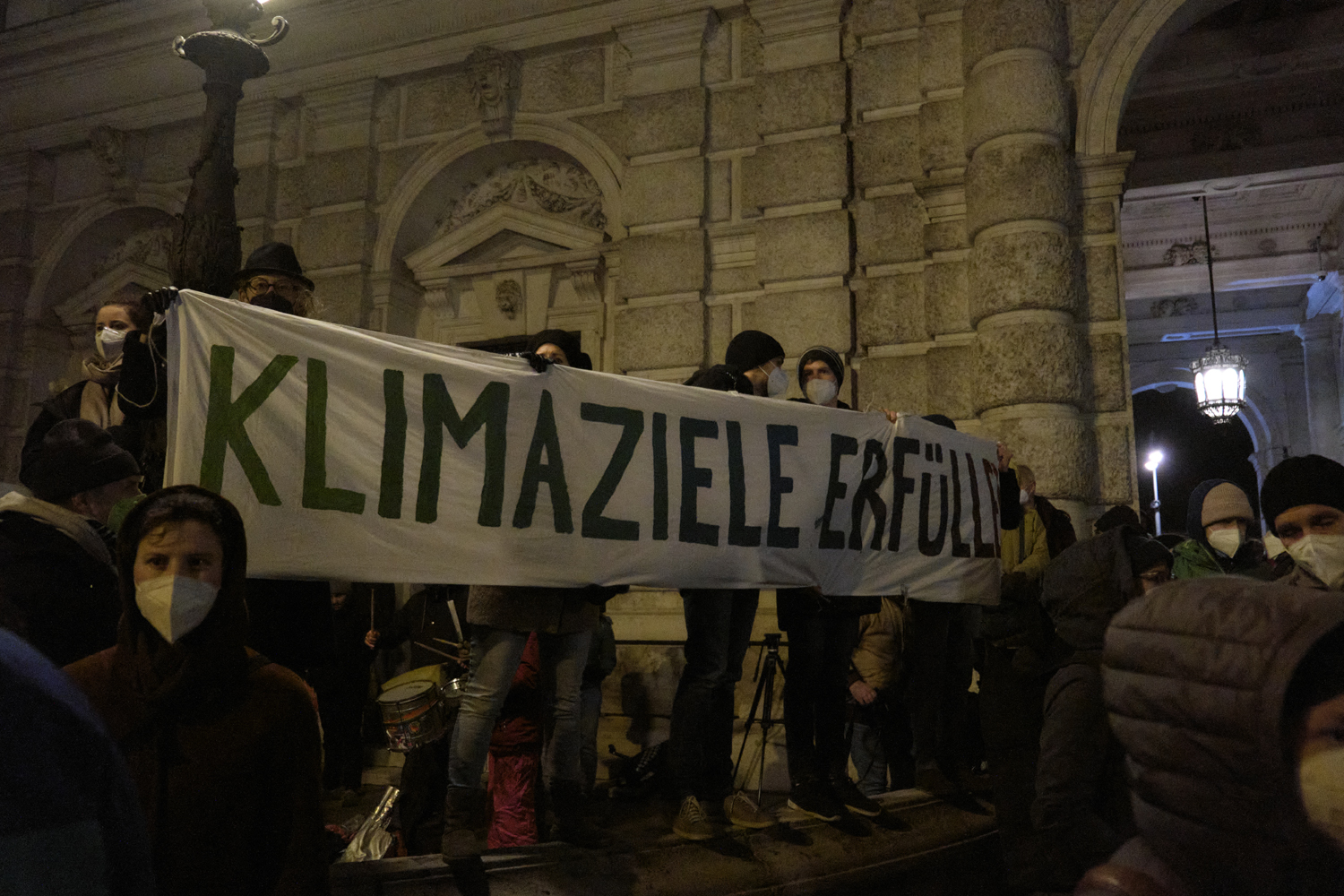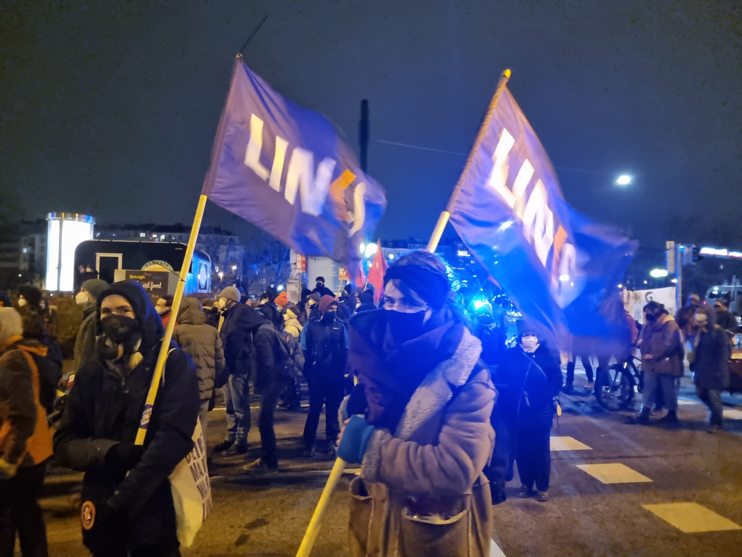 Zahlreiche linke und Umwelt-Organisationen waren mit Fahnen und Bannern vor Ort präsent. Auf der Bühne sagte Klima-Aktivistin Lena Schilling von der linken Organisation „Jugendrat“: „Ich bin fassungslos, dass wir noch immer hier stehen müssen.“ Doch gut wäre das Gefühl, „egal zu welcher Jahreszeit“ Schulter an Schulter mit vielen anderen Aktivist*innen zu stehen.