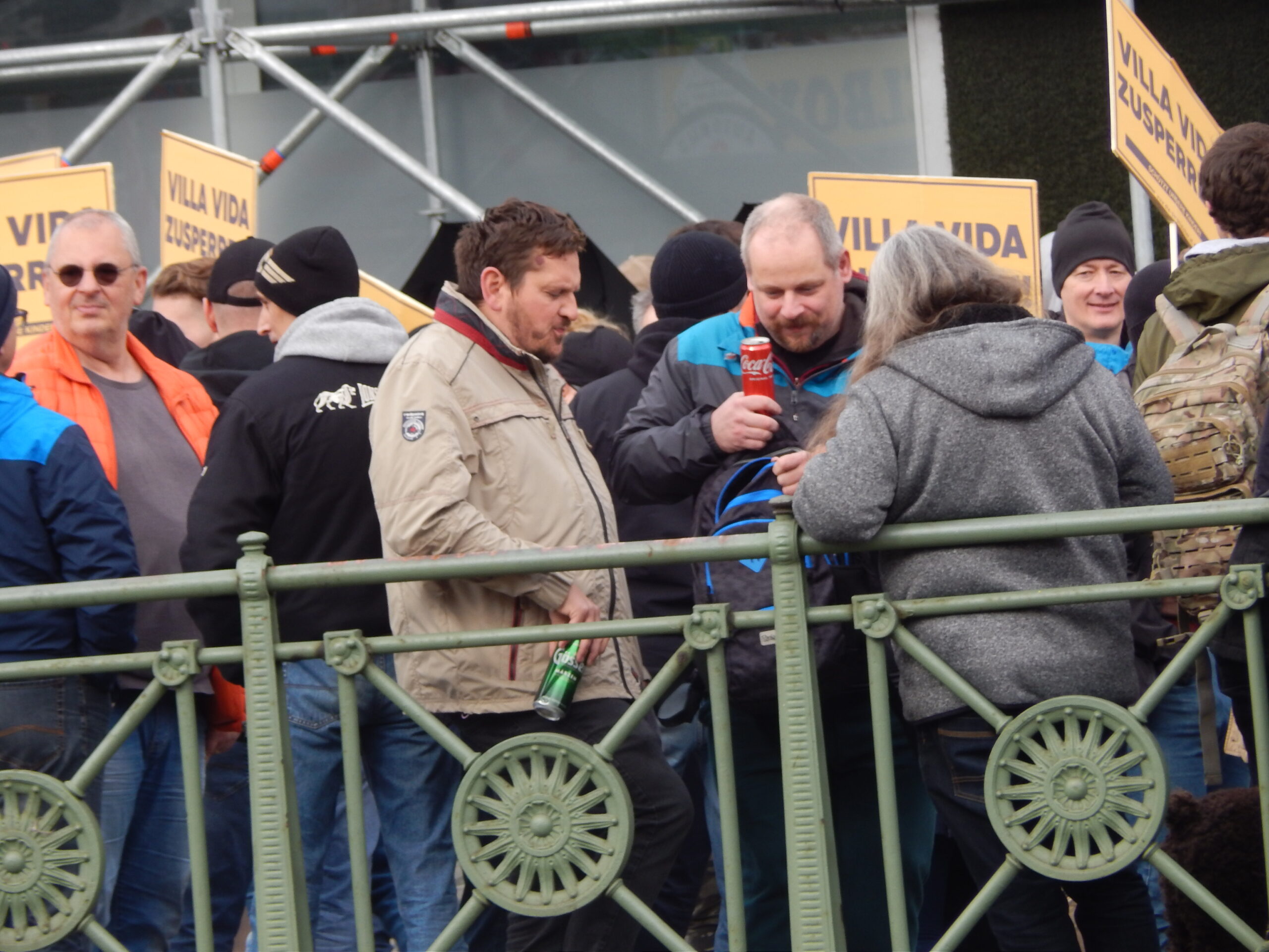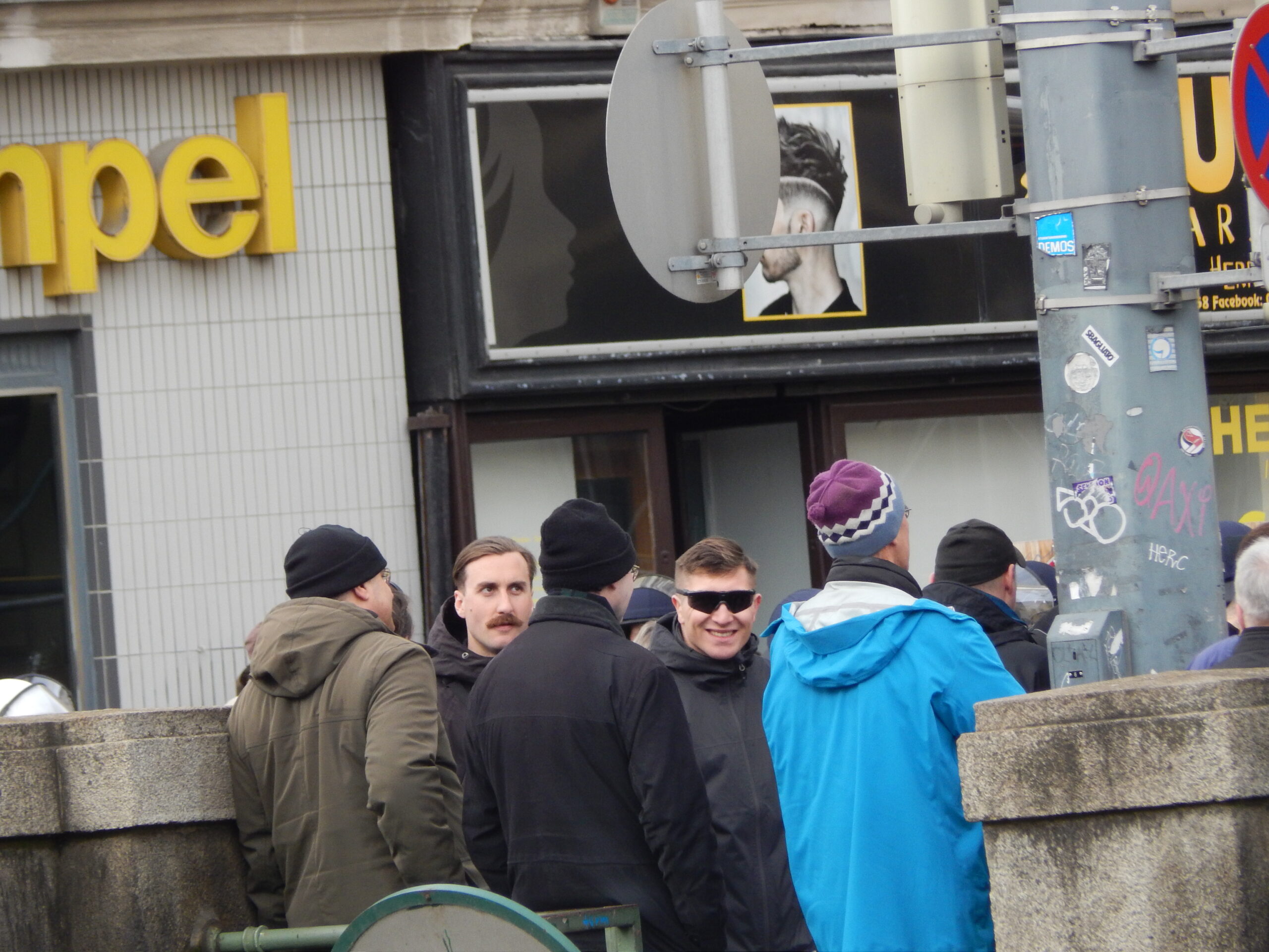 Nur mit sehr großen Einschränkungen war es übrigens möglich, vom rechten Aufmarsch zu berichten. Ich war während meiner Arbeit mit zahlreichen und andauernden Provokationen, Beschimpfungen, Rempeleien und Drohungen konfrontiert. Auch daran trägt die Polizei eine Mitschuld: Denn trotz meiner Proteste und meiner Hinweise auf die Arbeitssituation wurde mir verboten, meine Security durch die Polizeisperre mit zum rechten Aufmarsch zu nehmen. Hier seht ihr nur eine Sequenz, wie es dann vor Ort zuging: