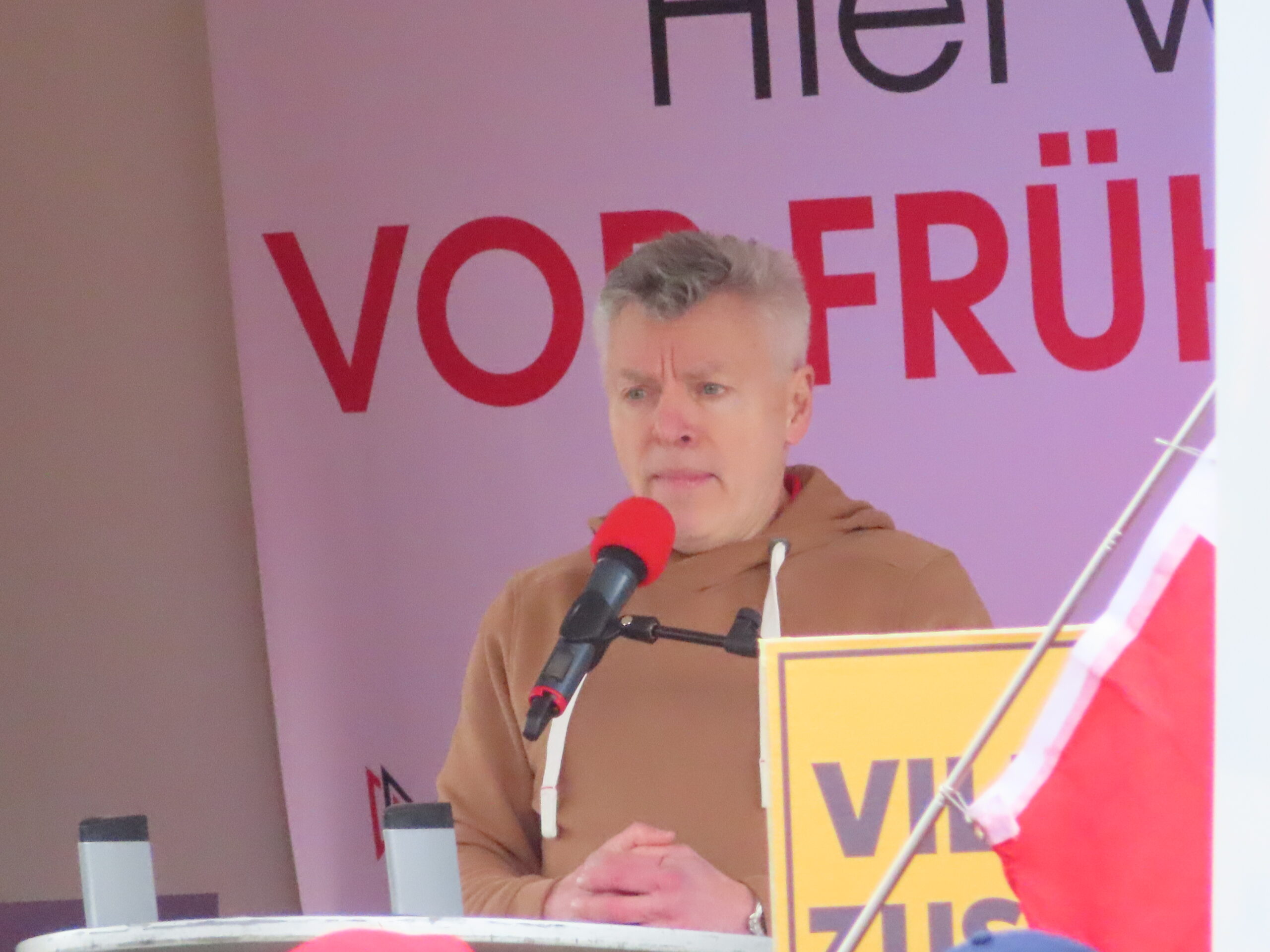 Problematisch wurde das Verhalten der Polizei dann auch noch bei einer weiteren Begegnung auf der Ringstraße: Nachdem Antifaschist:innen dort am Rande des rechten Aufmarsches verbal protestiert hatten, drängte die Polizei sie zurück. Dabei wurde eine Person bewusstlos, was da passiert ist, ist derzeit noch unklar. Diese Person wurde daraufhin von anderen aus dem unmittelbaren Gefahrenbereich getragen und erstversorgt. Doch anstatt zu stoppen, drängte die Polizei die solidarischen Menschen trotz wütender Proteste und Rufe nach Sanitäter:innen weiter in Richtung der bewusstlosen Person und über sie. Schließlich wurde auch noch Pfefferspray eingesetzt. Auch einer meiner Sicherheitsleute und ich wurden getroffen, mein Security musste versorgt werden. Ein völlig überzogener Einsatz der Polizei, über den auf jeden Fall noch gesprochen werden muss.