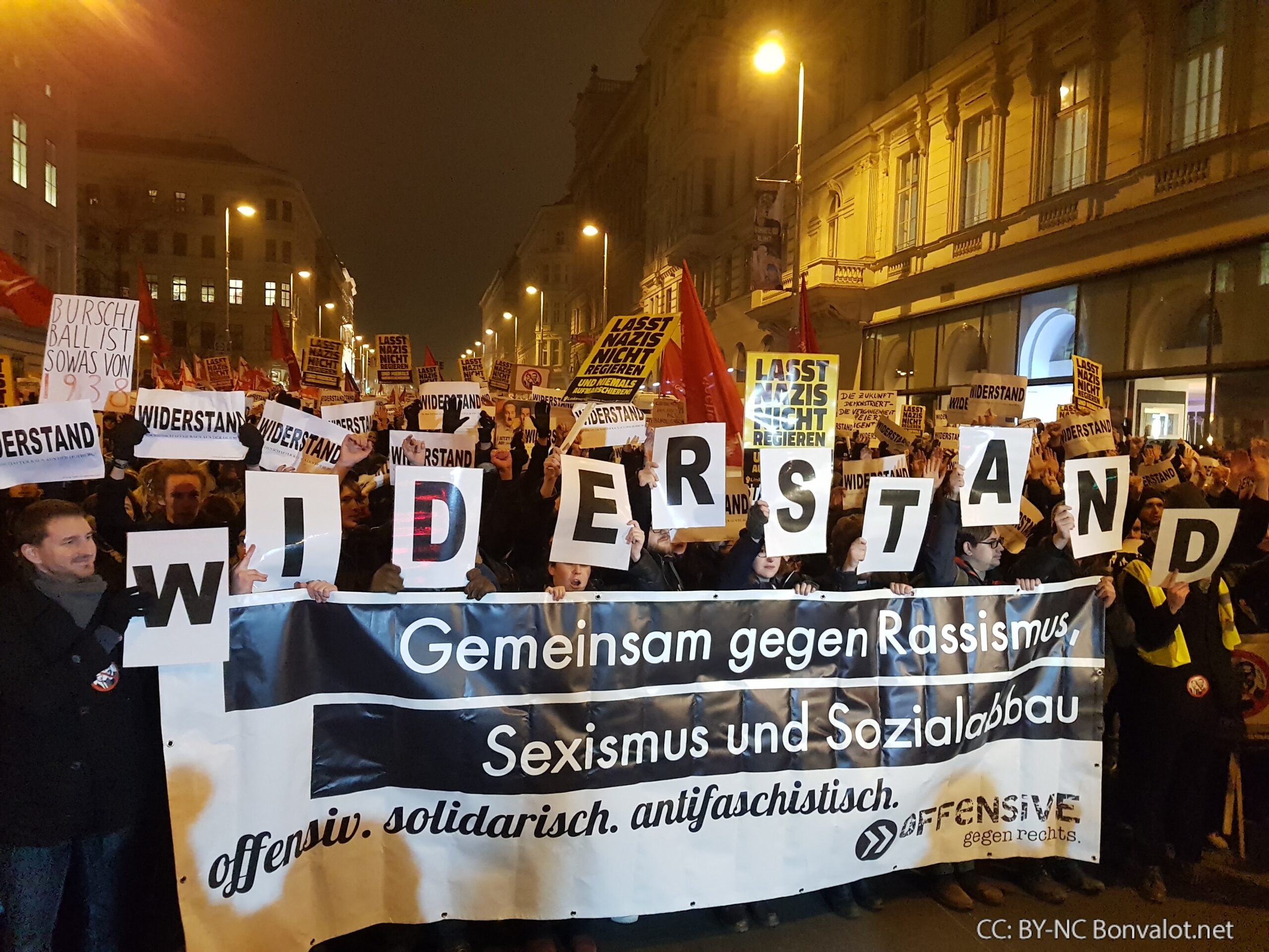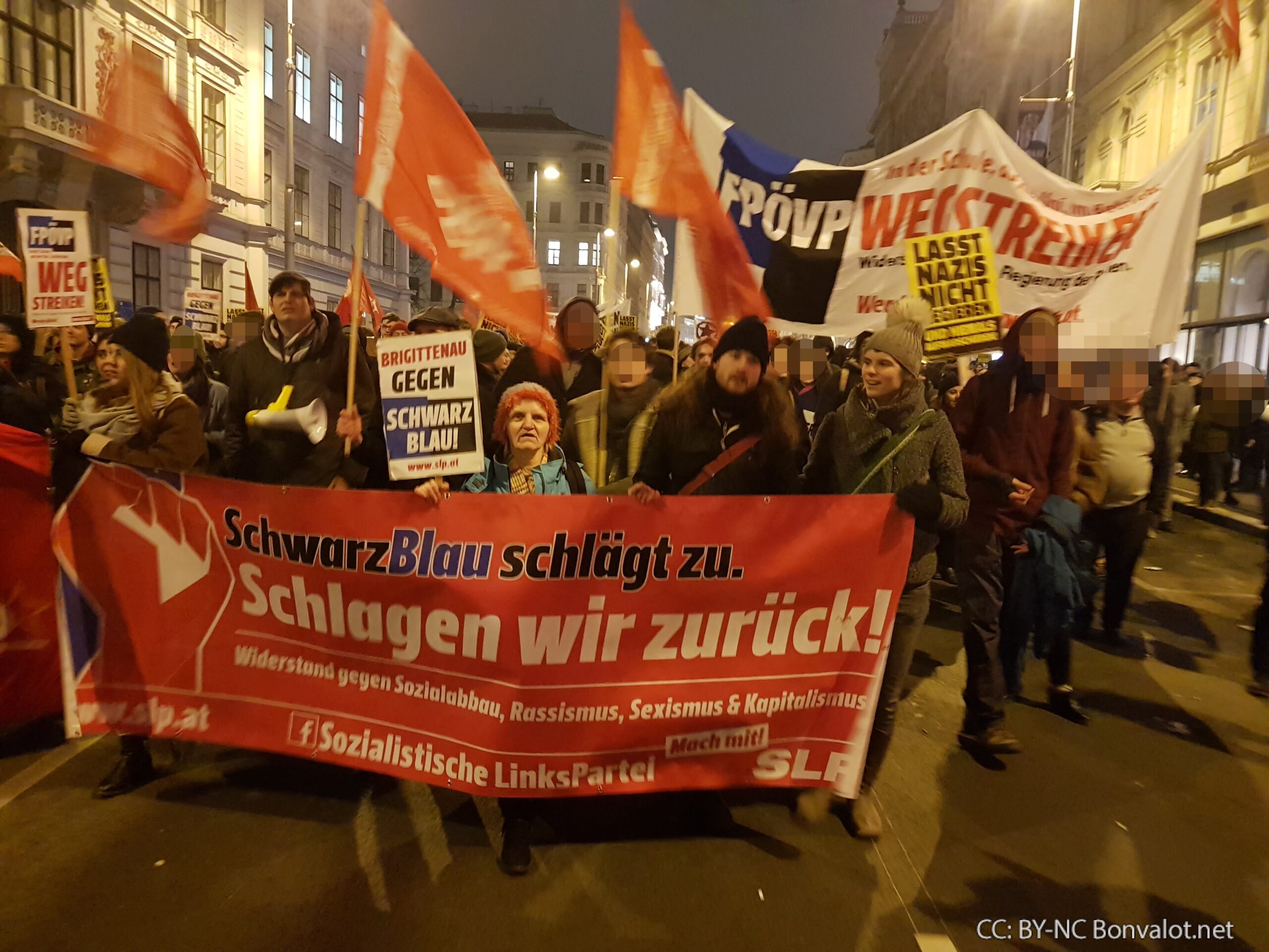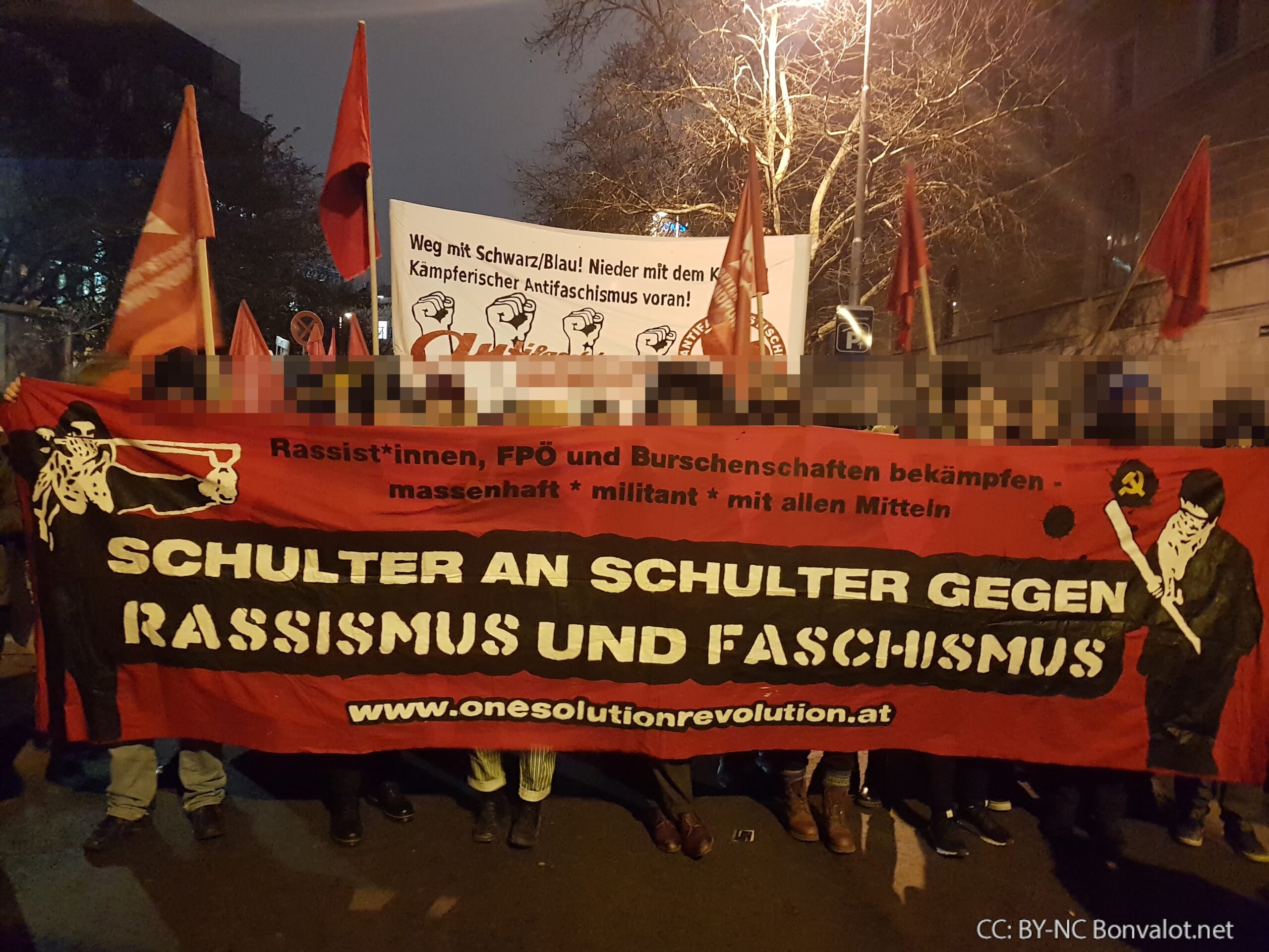 Die neue schwarz-blaue Regierung verlieh dem Akademikerball in diesem Jahr besondere Brisanz. Das spiegelte sich auch im Aufruf zur Demonstration, den das Bündnis Offensive gegen Rechts (OGR) unter das Motto „FPÖ-Burschiball blockieren. Nein zur schwarz-blauen Regierung der Reichen und ihren Bällen“ gestellt hatte. Die OGR ist ein Bündnis aus links-sozialdemokratischen, kommunistischen und trotzkistischen Organisationen.