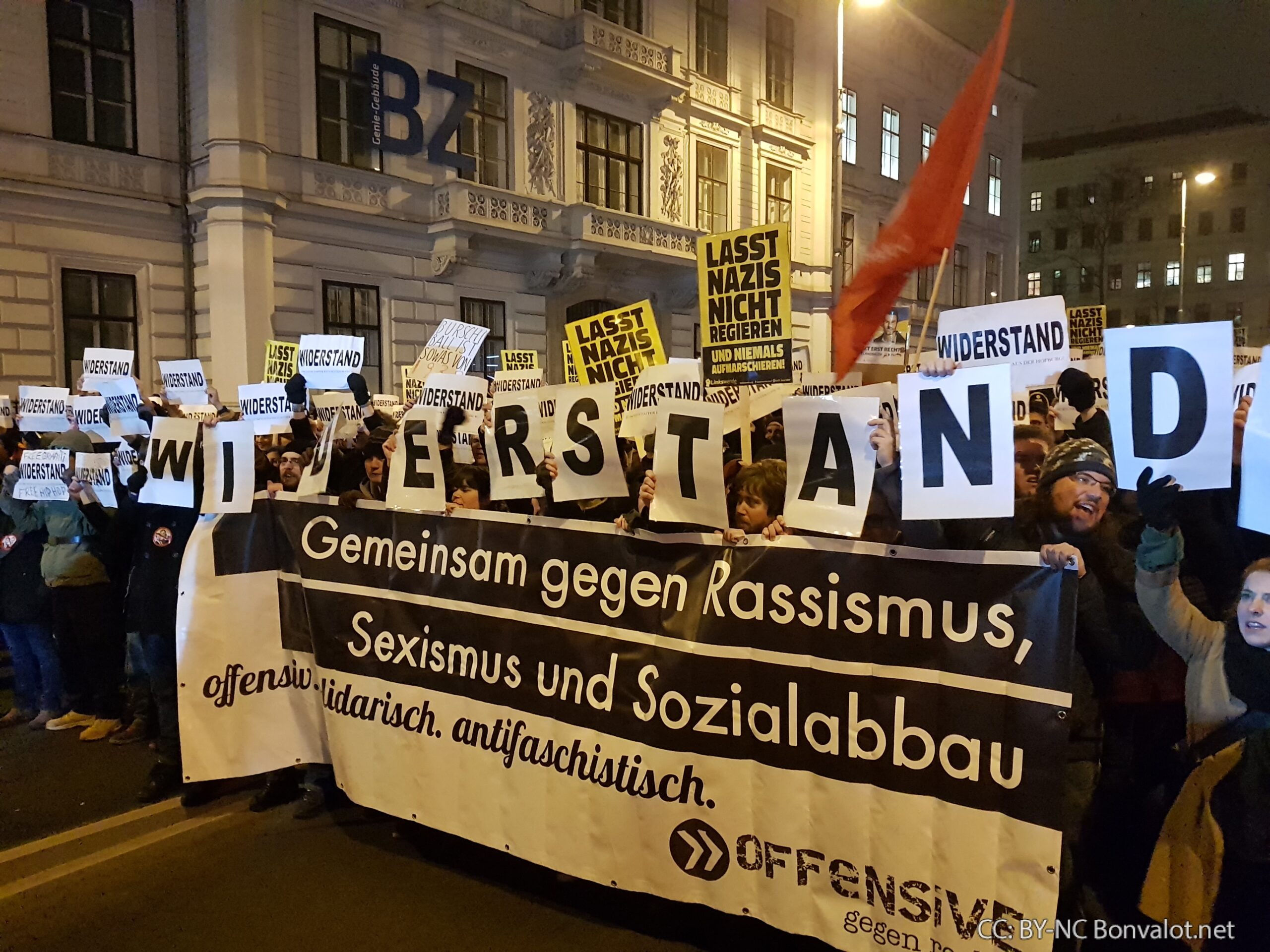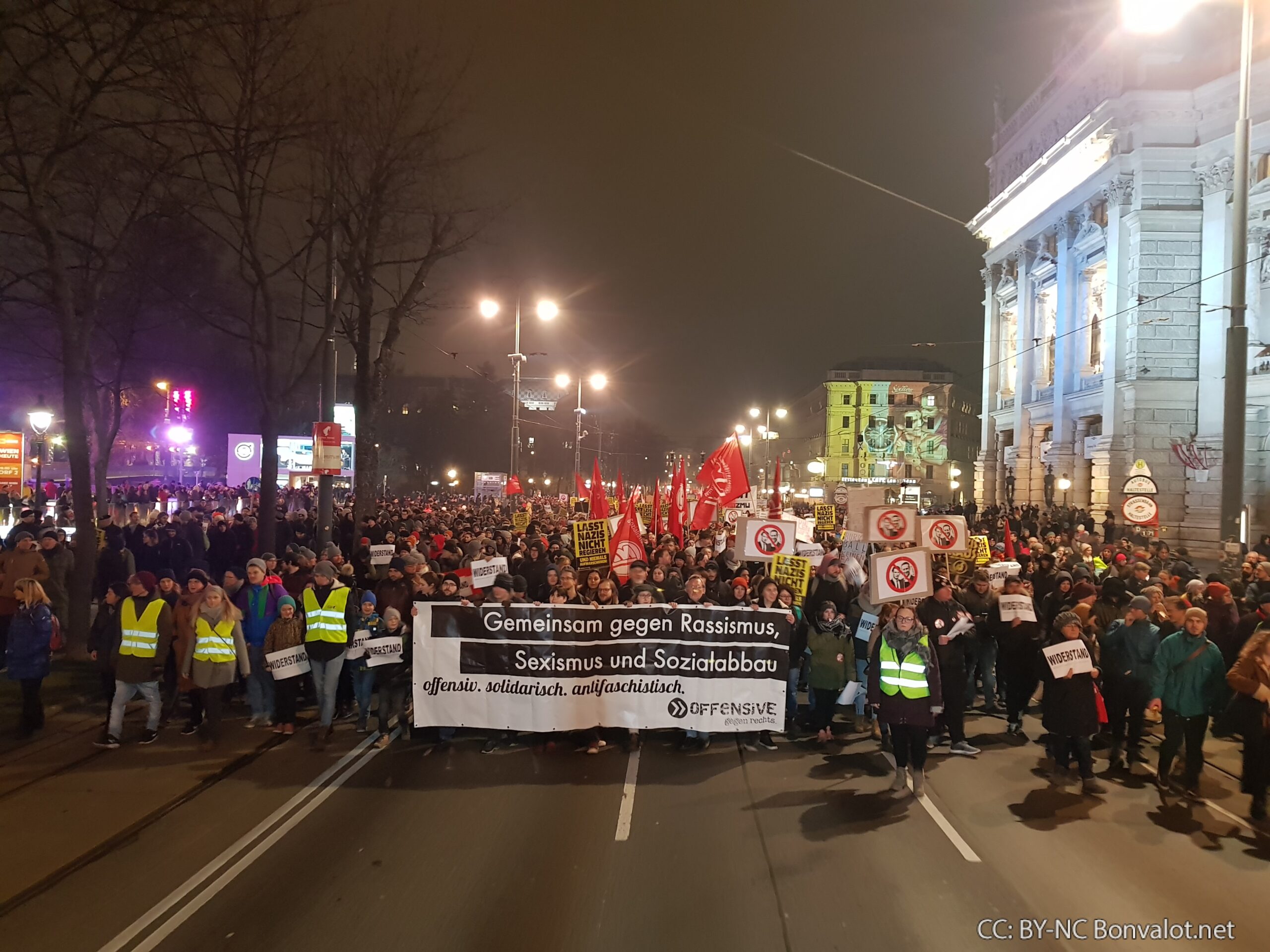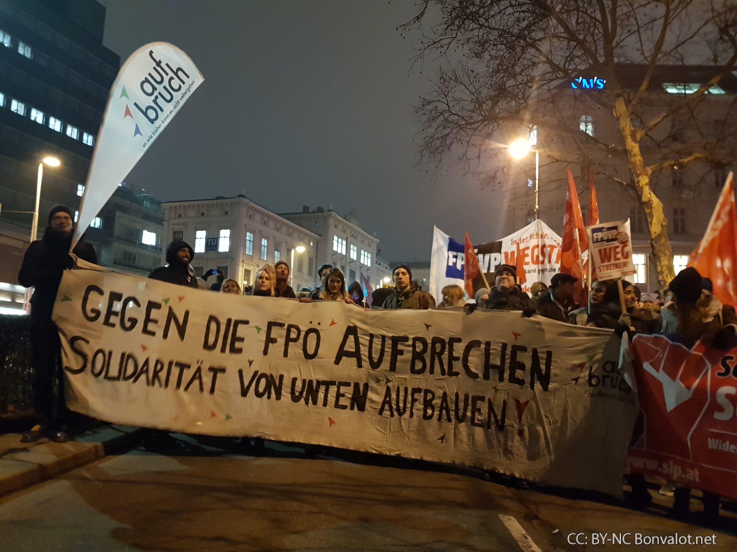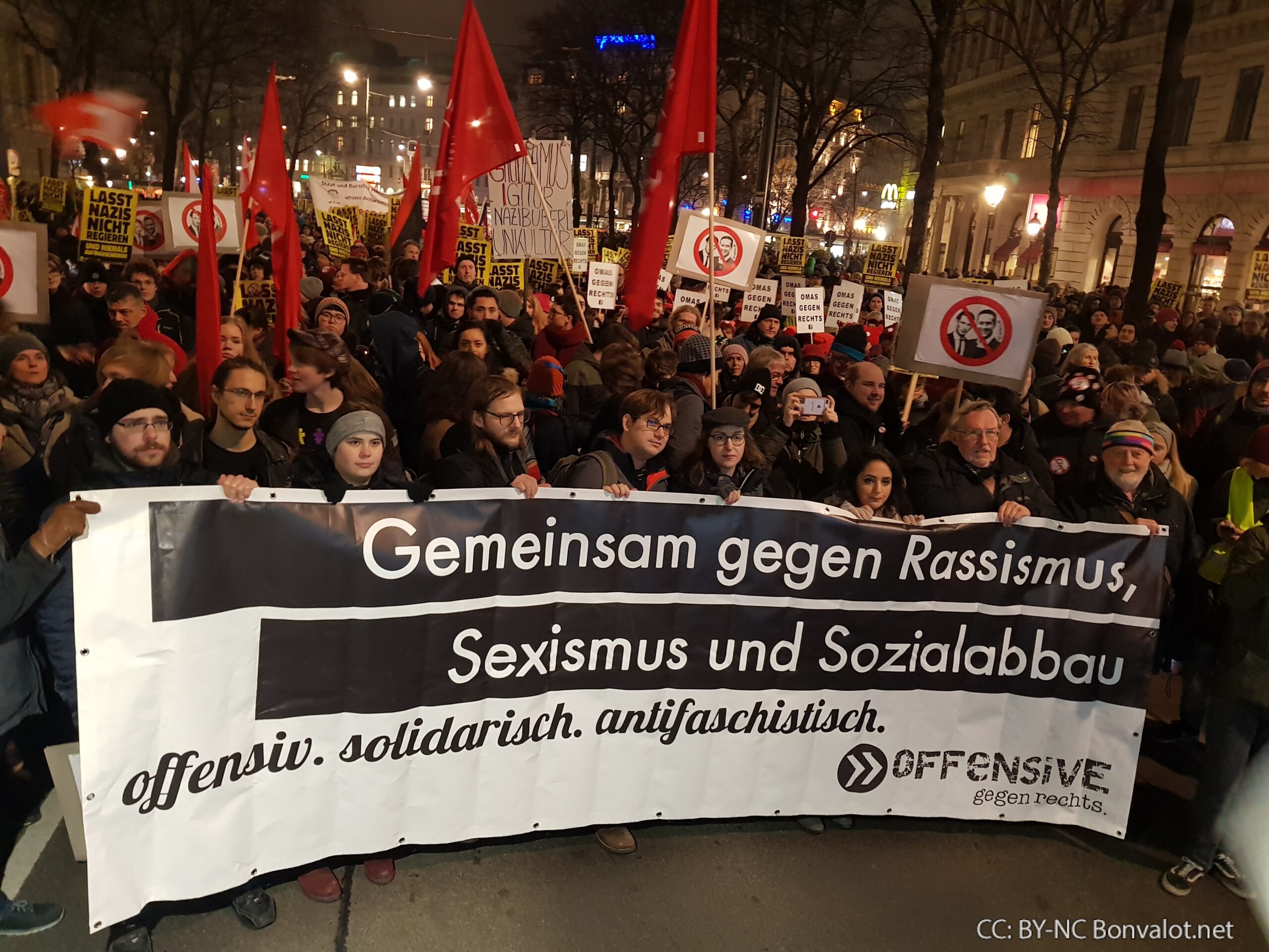 Die neue schwarz-blaue Regierung verlieh dem Akademikerball in diesem Jahr besondere Brisanz. Das spiegelte sich auch im Aufruf zur Demonstration, den das Bündnis Offensive gegen Rechts (OGR) unter das Motto „FPÖ-Burschiball blockieren. Nein zur schwarz-blauen Regierung der Reichen und ihren Bällen“ gestellt hatte. Die OGR ist ein Bündnis aus links-sozialdemokratischen, kommunistischen und trotzkistischen Organisationen.