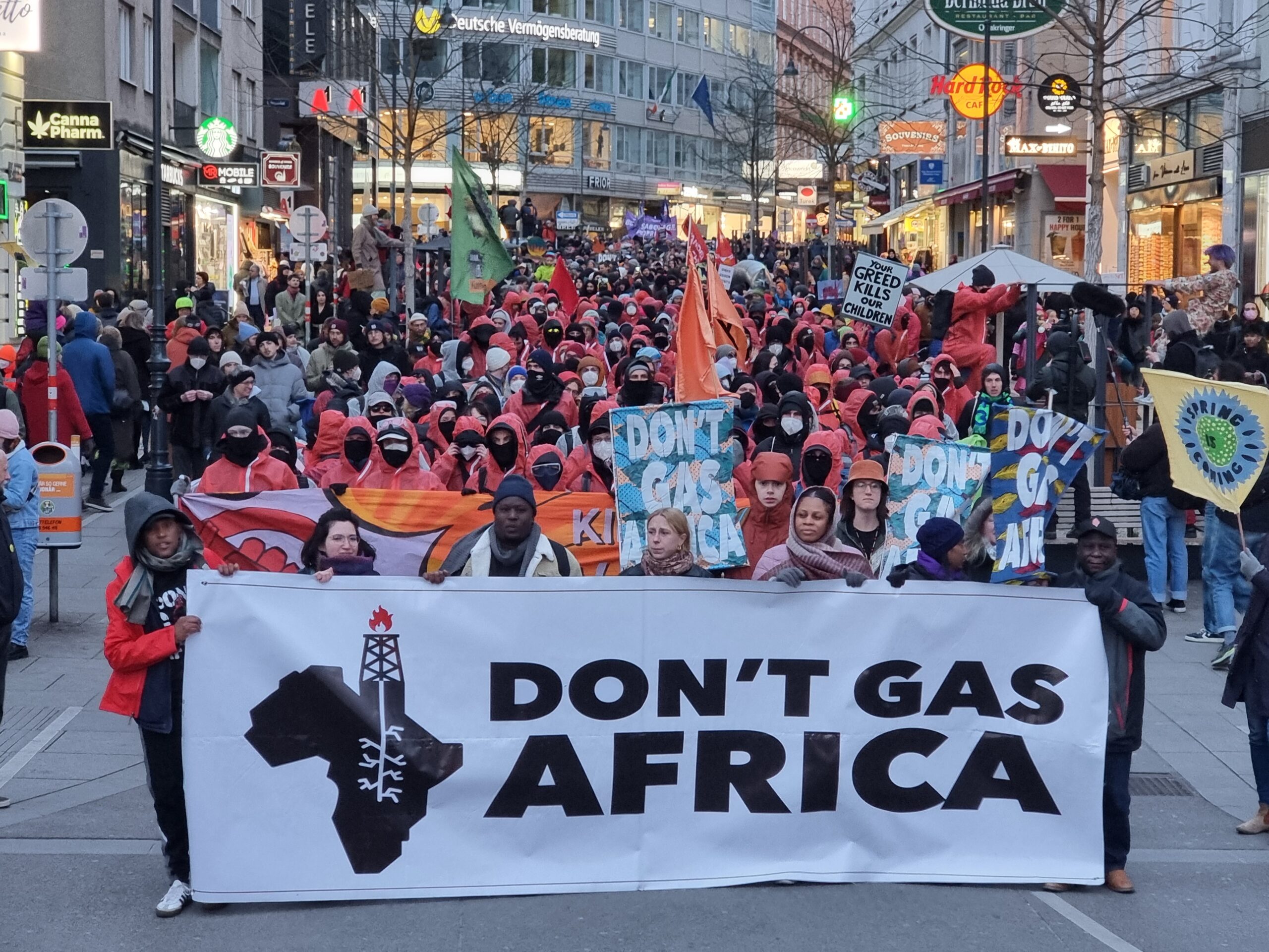 Ein weiterer Schwerpunkt der Konferenz war die Ausbeutung des afrikanischen Kontinents durch globale Energie-Konzerne. Aktivist:innen aus verschiedenen afrikanischen Ländern bildeten deshalb mit einem Banner mit der Aufschrift „Don´t Gas Africa“ auch die Spitze des Demonstrationszugs.