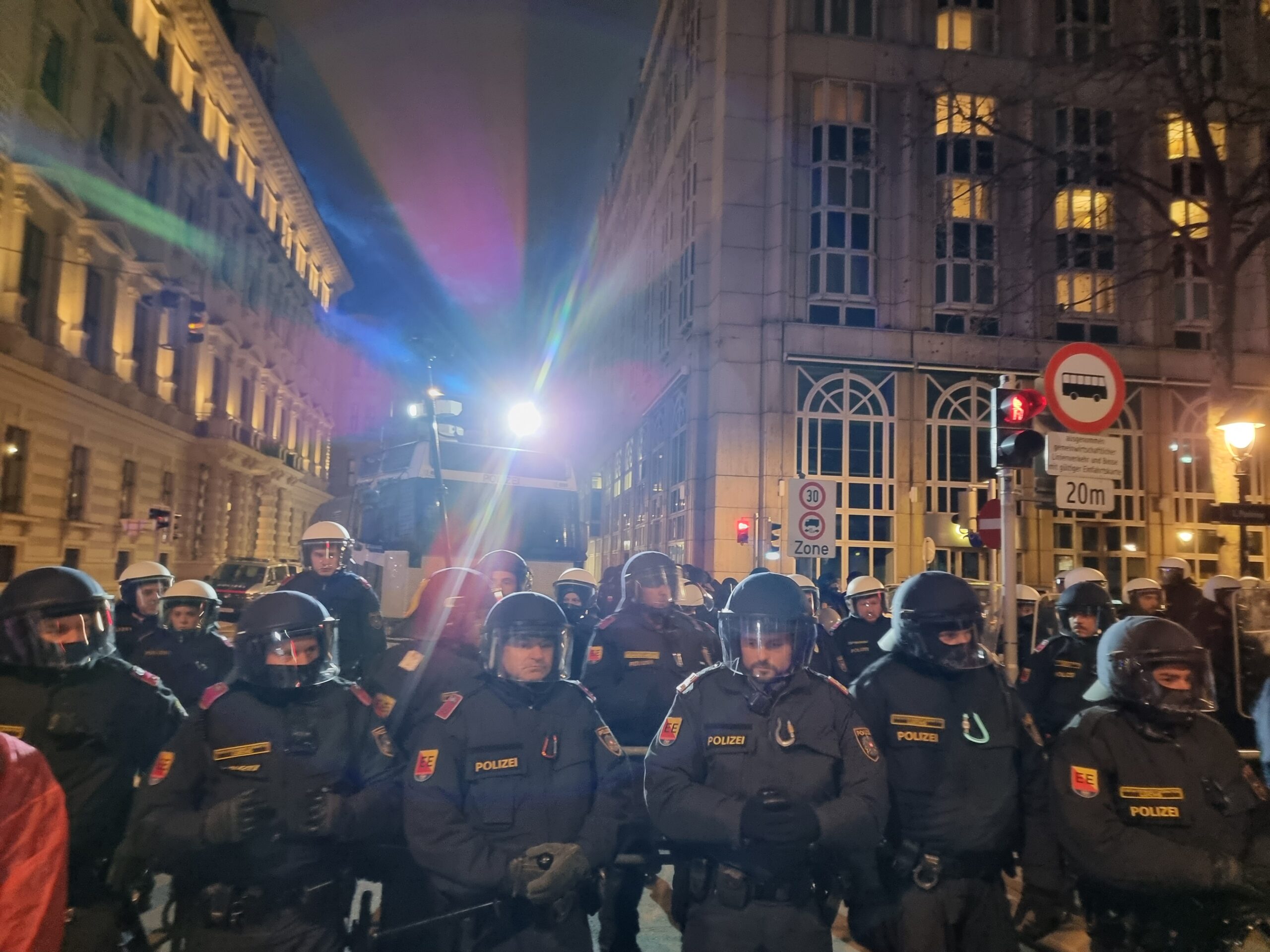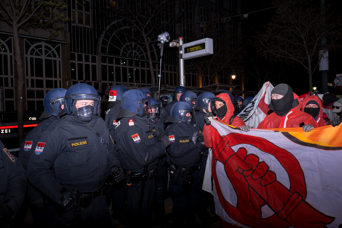 Das Treffen der Großkonzerne wurde unter anderem von Einsatzeinheiten aus verschiedenen österreichischen Bundesländern, der Wiener WEGA, der Hundestaffel und sogar zwei Wasserwerfern beschützt. Hier könnt ihr lesen, warum die Gas-Konferenz in Wien so problematisch ist.