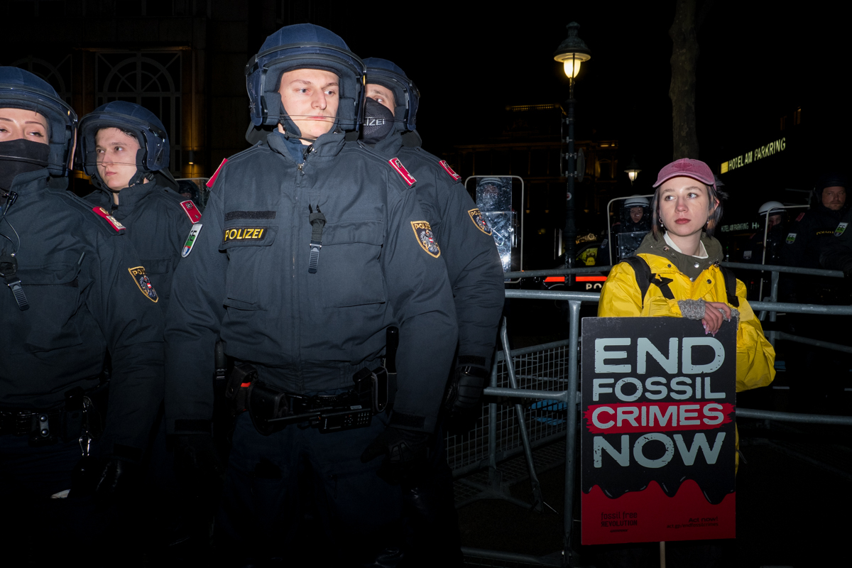 Über 4000 Menschen sind in Wien gegen die Gaskonferenz der Energie-Konzerne auf die Straße gegangen. Die Polizei fuhr mit Hundestaffel und Wasserwerfen auf. Das sind die Bilder zum Protest!