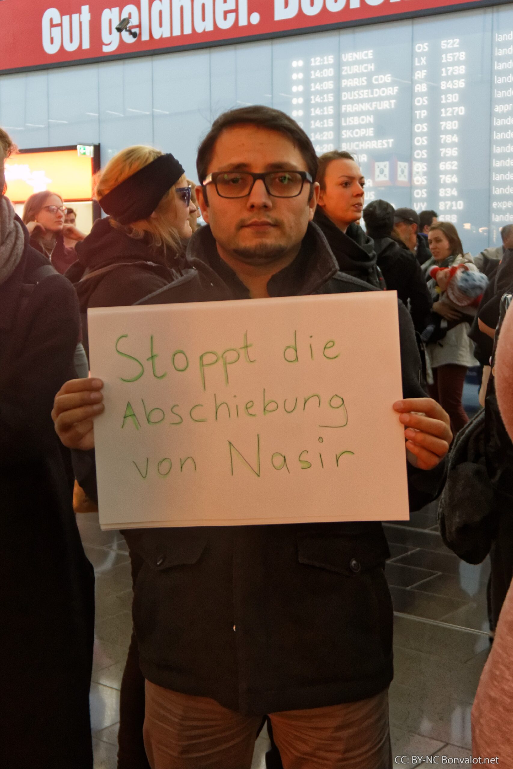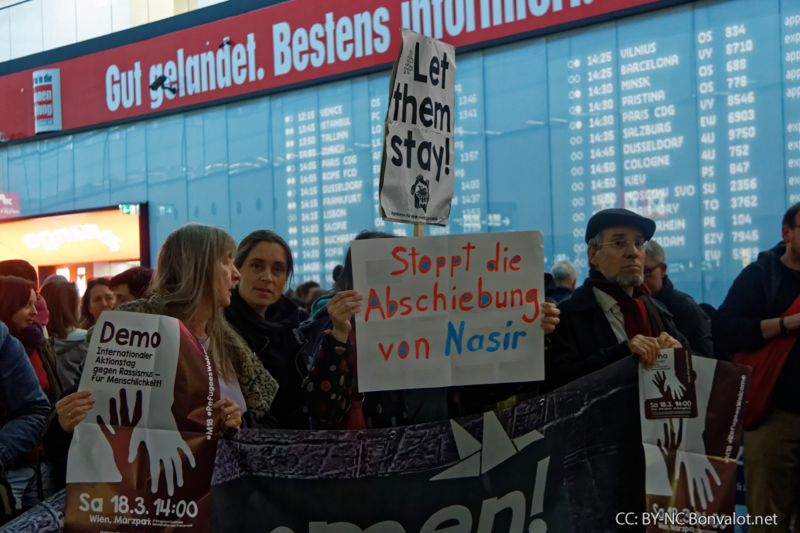 Am Montag traf diese Politik einen jungen Mann, den 18-jährigen Nasir. Gegen seine Abschiebung protestierten rund 150 Menschen am Flughafen Wien mit einer Kundgebung und Demonstration durch die Halle des Airports.