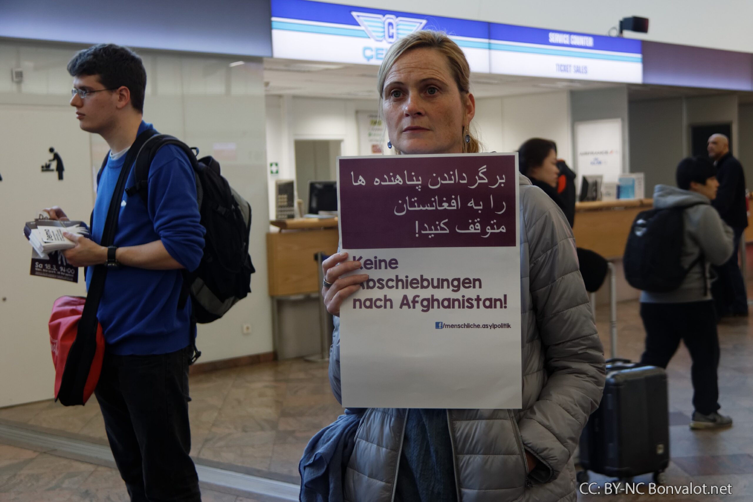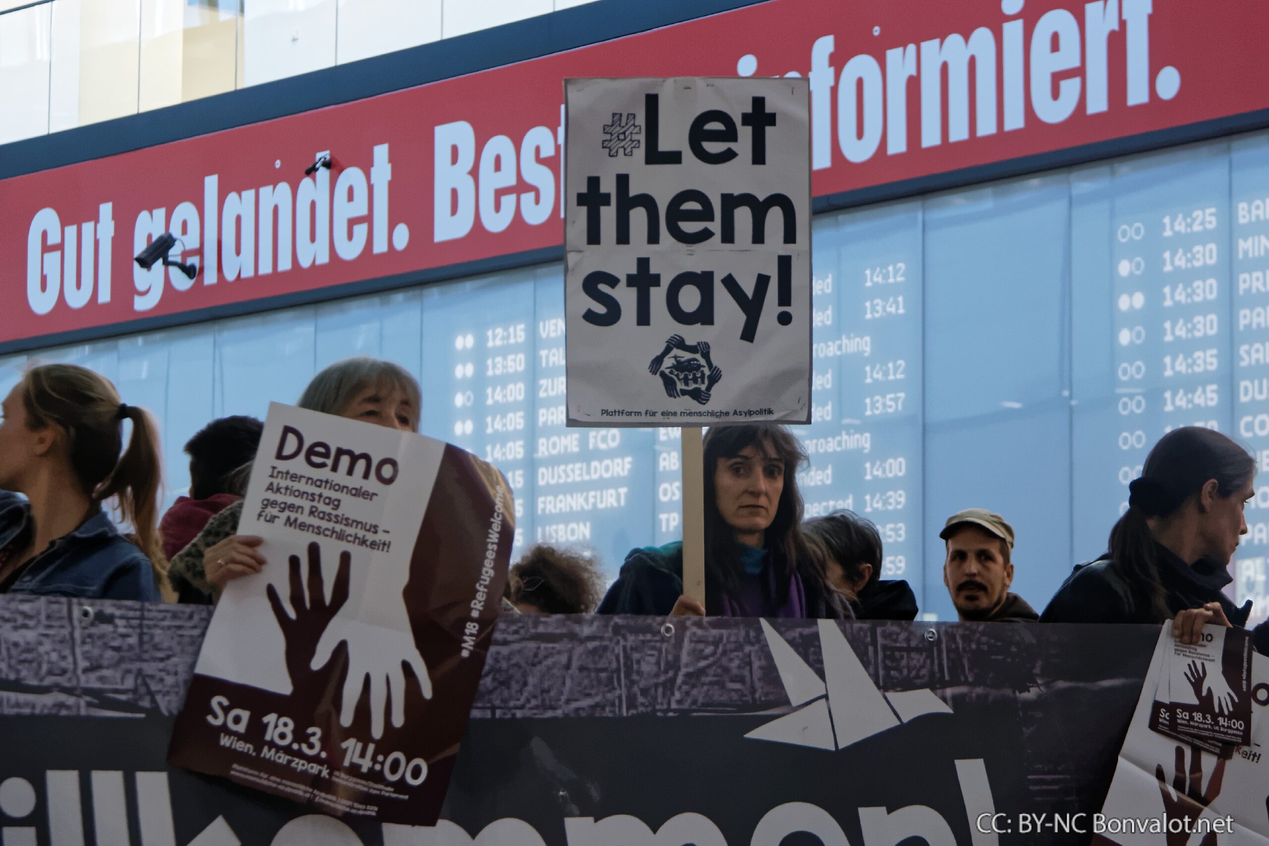 Rund 150 Menschen haben am Montag am Flughafen Wien gegen Abschiebungen nach Afghanistan protestiert. Eine Bildreportage.