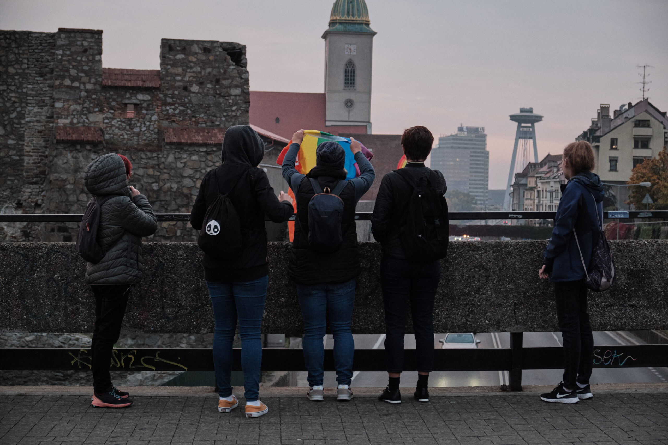 In Bratislava sind tausende Menschen auf der Straße. Sie trauern um Juraj und Matúš, die am Mittwoch bei einem mutmaßlich faschistischen Terroranschlag gegen die LGBTI-Community ermordet wurden. Über den Menschen weht der Regenbogen. pic.twitter.com/yhBYh0s7z3