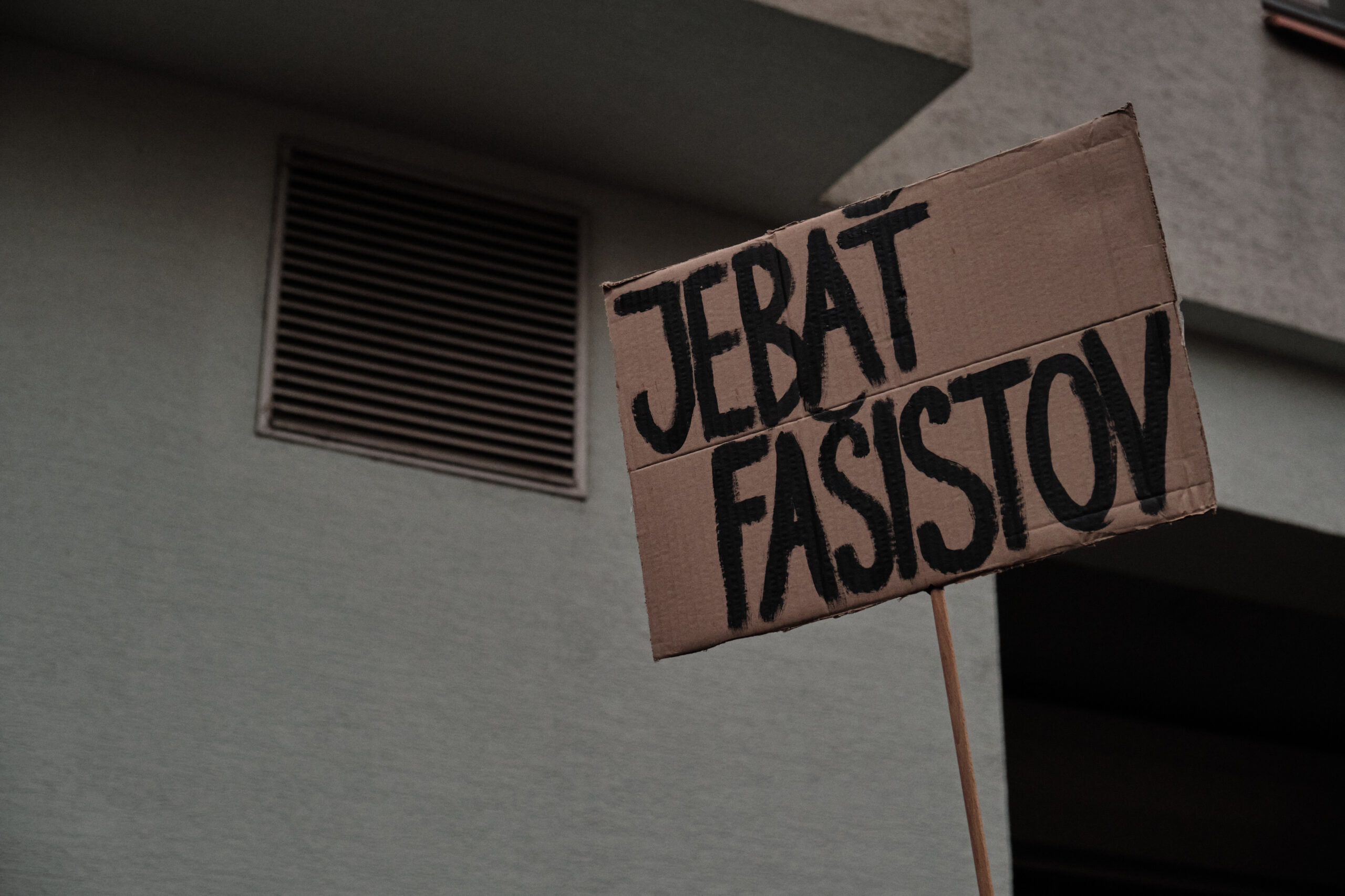 Die slowakische Polizei hat sich bei der gestrigen Kundgebung über Facebook zu Wort gemeldet und erklärt, es gäbe Null-Toleranz für jede Form von Hass, Gewalt oder Mobbing. Die Polizei stünde zu den Werten von Freiheit und Toleranz. Doch Taten sprechen lauter als Worte: Zwei mutmaßliche Zivil-Polizisten trugen sogar auf der Gedenkkundgebung für Juraj und Matúš Kleidung einschlägiger extrem rechter Marken.