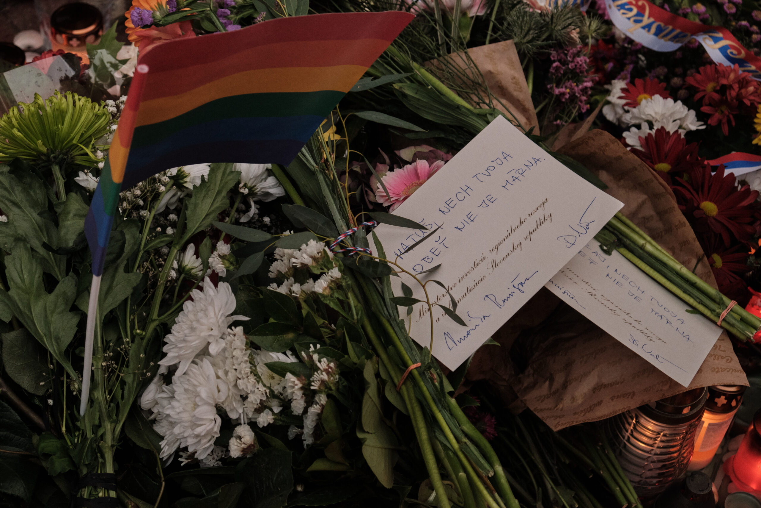 Andere Menschen legen weitere Kerzen nieder, bringen Blumen. Der Besitzer der Tepláren-Bar sagt auf der Pressekonferenz laut aktuality.sk, dass er nicht glaubt, dass die Bar wieder öffnen würde. „Auch aus Respekt vor den Ermordeten ist es für uns undenkbar, dort weiter Spaß zu haben. Die Wunde ist so groß, dass ich mir nicht vorstellen kann, dass wir so weitermachen“, sagt er mit Tränen in den Augen.