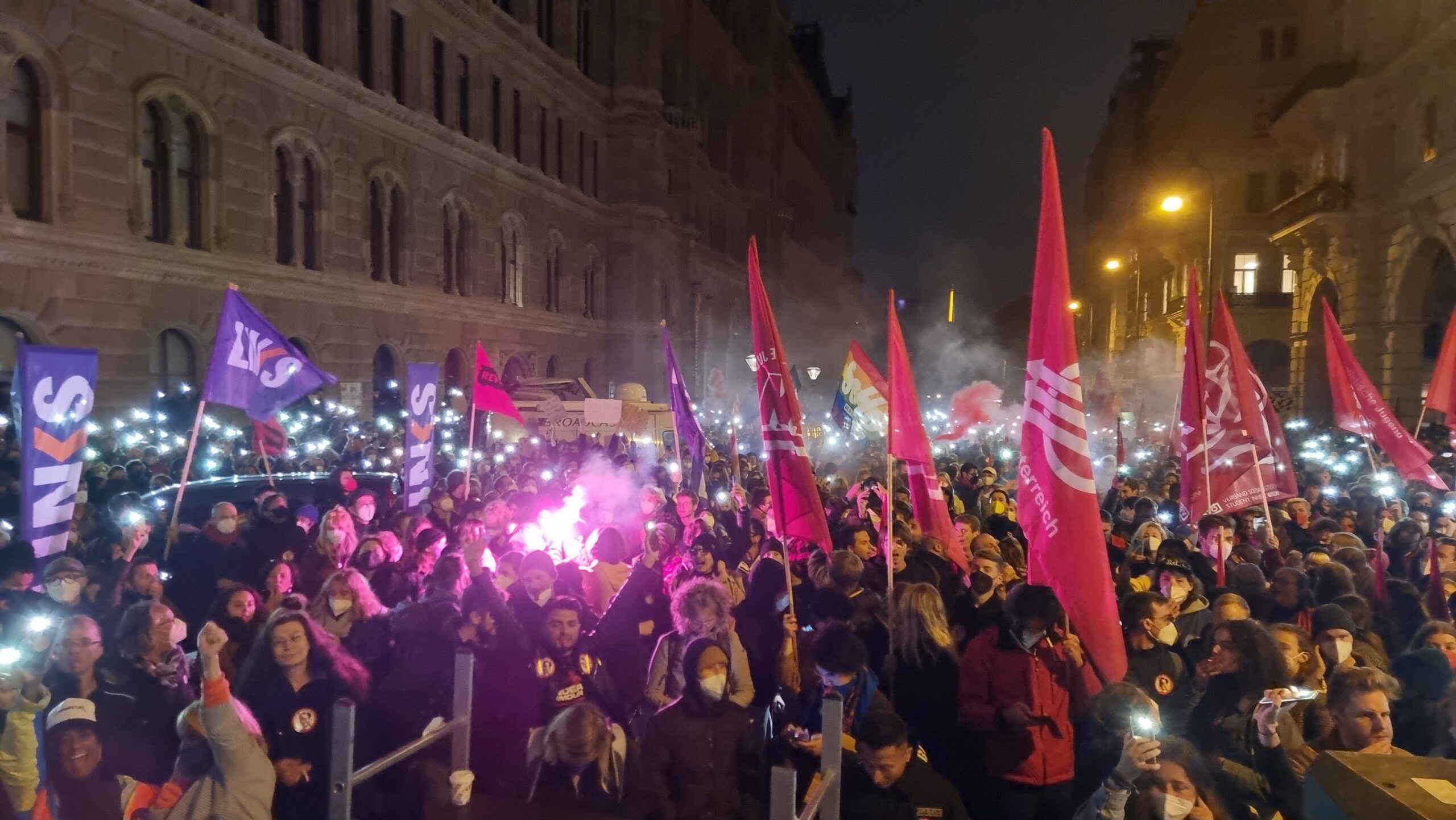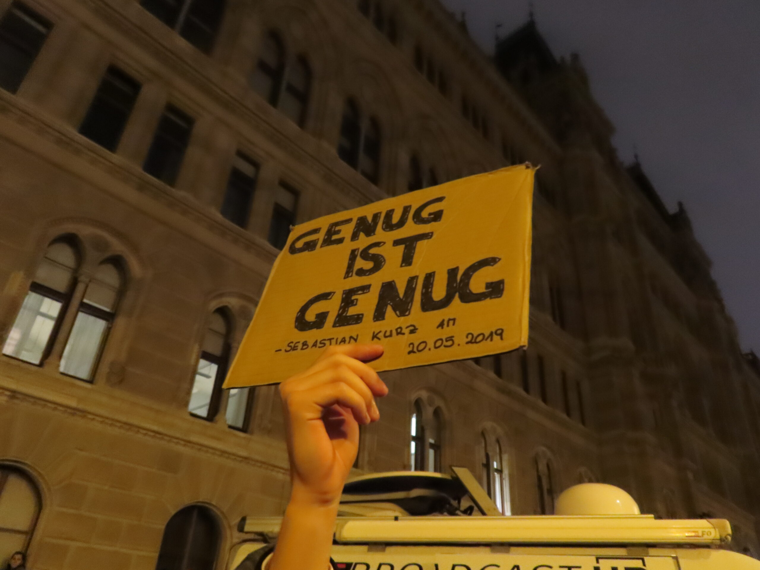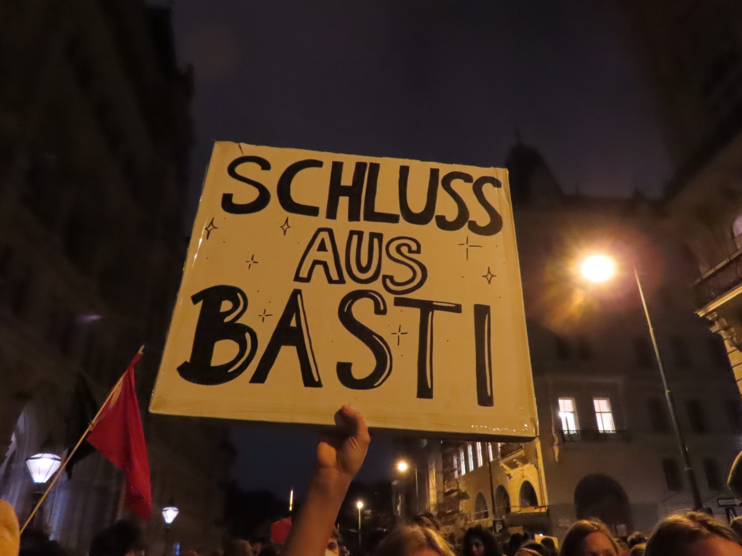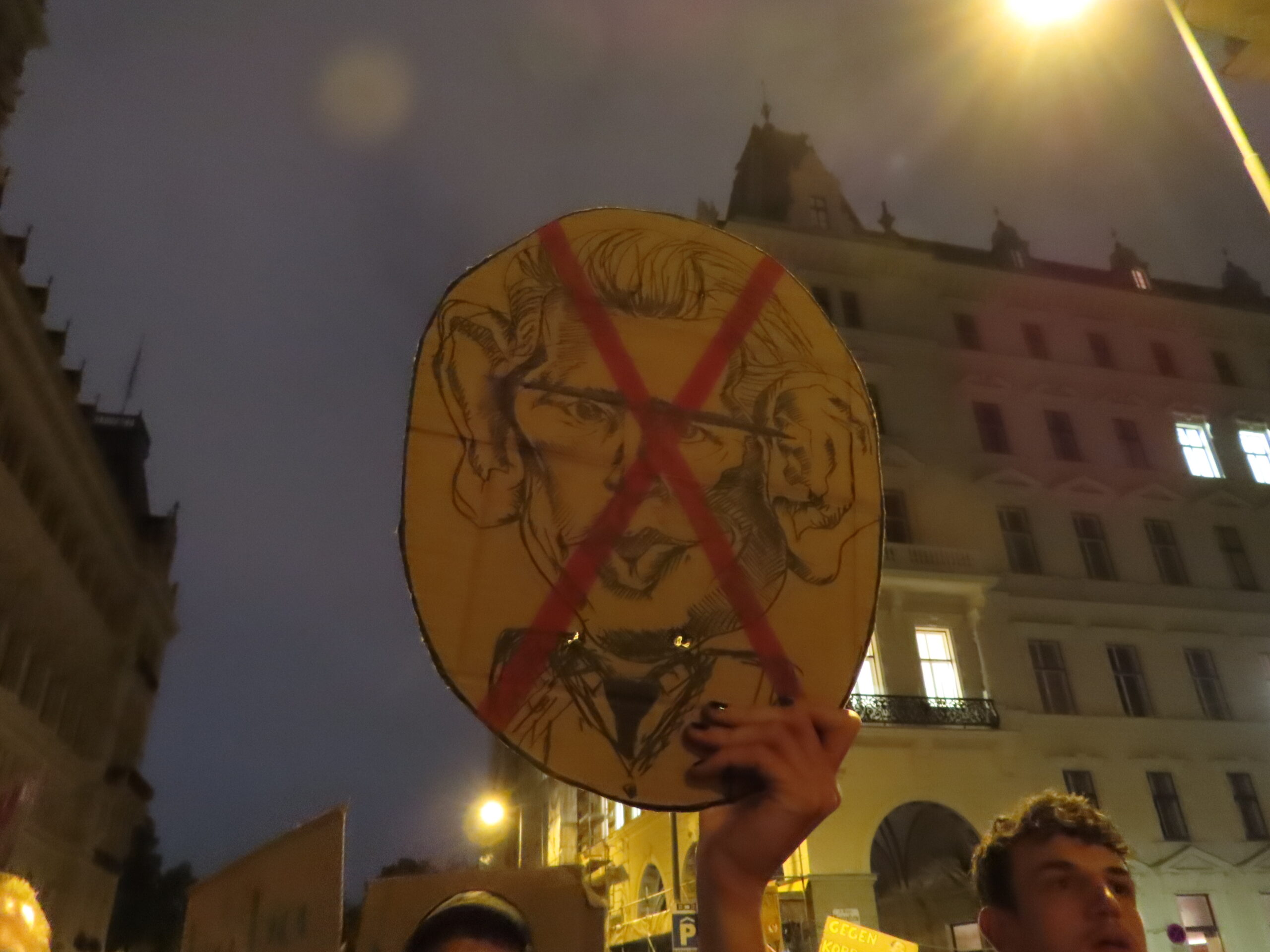 „Basti raus!“ und „Nieder, nieder, nieder mit der ÖVP!“. Lautstark demonstrierten am Donnerstagabend tausende Menschen vor der ÖVP-Zentrale in der Wiener Lichtenfelsgasse. Aufgerufen zur Demo hatte ein Bündnis aus linken Organisationen, vor allem den sozialdemokratischen Jugendorganisationen sowie der Wiener Partei LINKS. Gekommen waren nach Angaben der Veranstalter*innen bis zu 7000 Menschen.