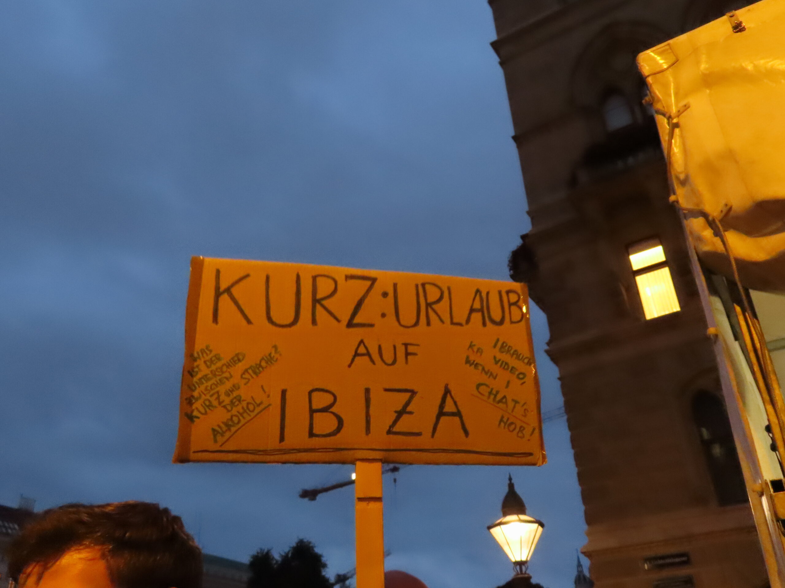 Vom Band tönte dann verschiedene Lieder, etwa „Tango Corrupti“ von Rainhard Fendrich und vor allem die neue Hymne der Linken, die sich nach dem Ibiza-Skandal etabliert hatte: „We´re going to Ibiza“. Zur Erinnerung: Ohne den Ibiza-Skandal wäre letztlich auch der aktuelle ÖVP-Skandal nicht aufgeflogen, der bei Beschlagnahmungen von Handys entdeckt wurde.