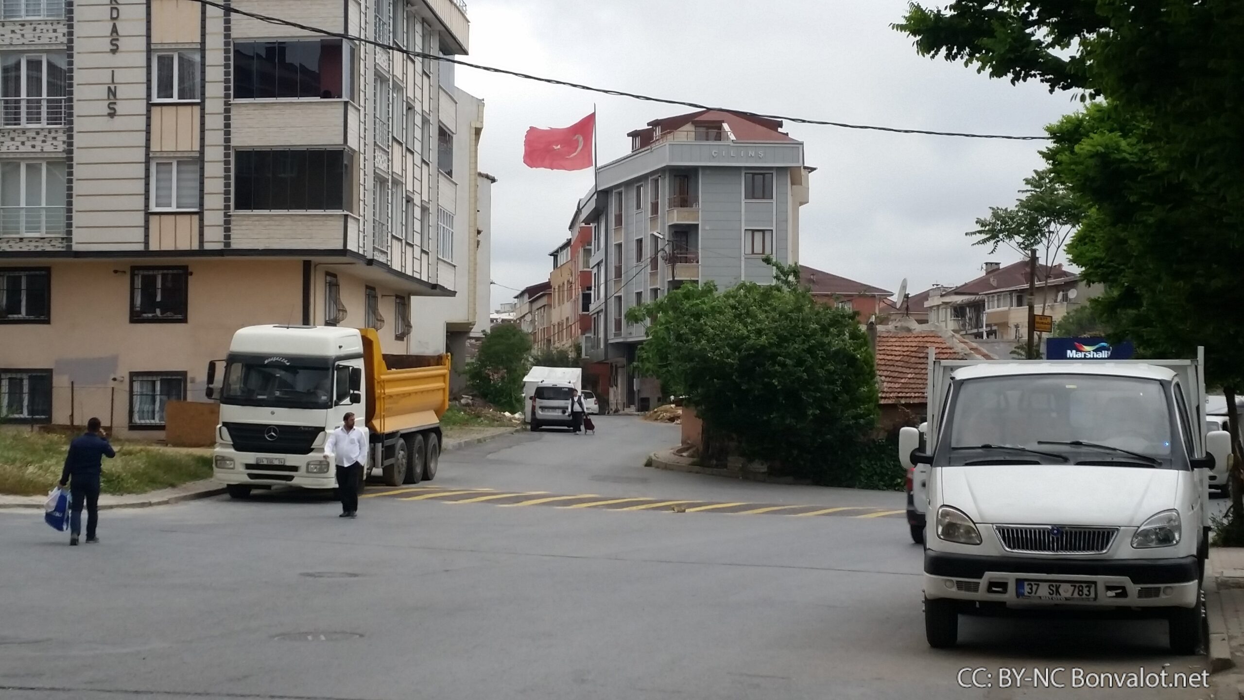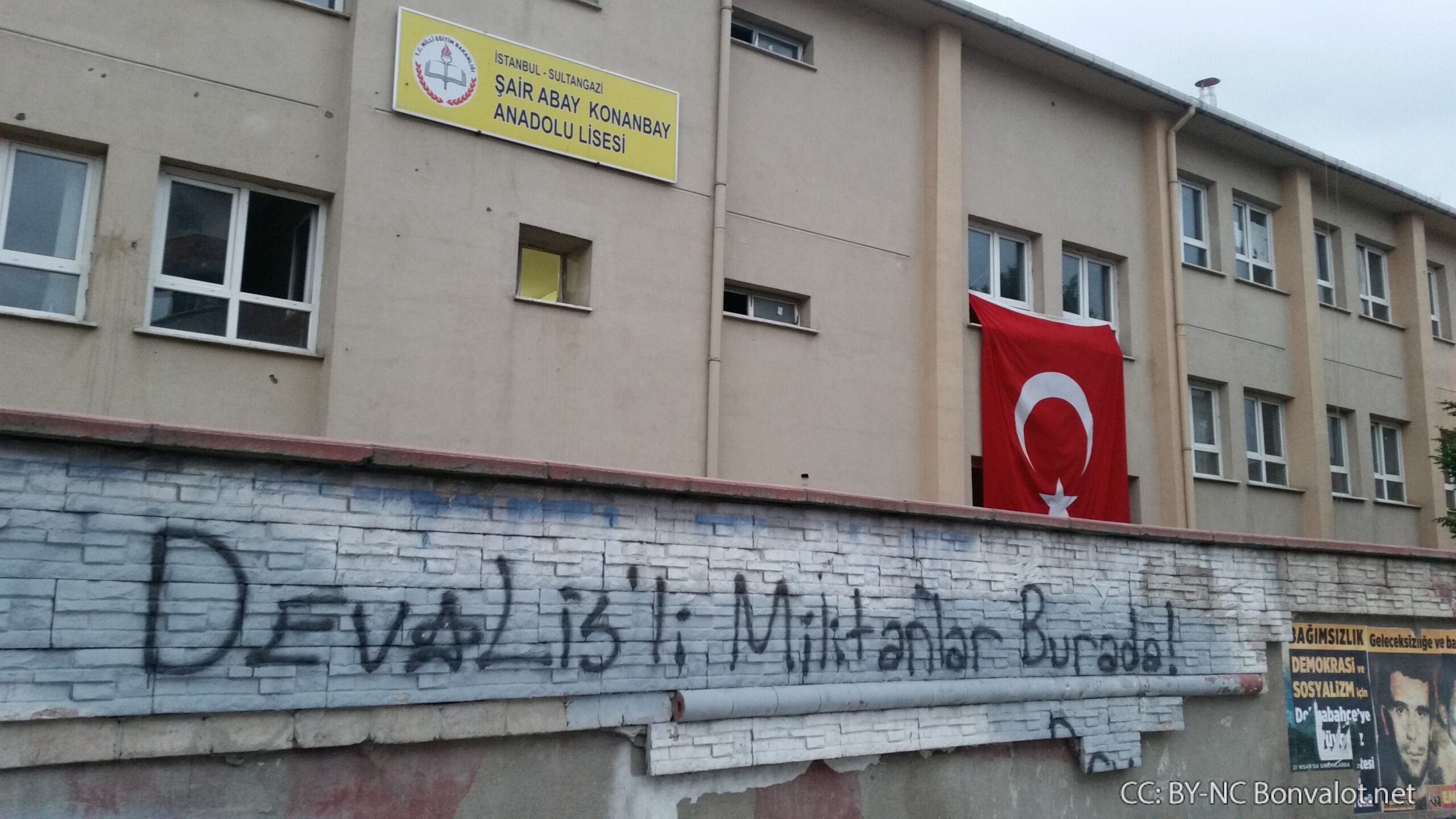 Gleichzeitig wirkt die Präsenz der Kräfte des Staates hier wie die Präsenz einer Besatzungsmacht. Am höchsten Punkt des Viertels steht eine große Kaserne, über ihr eine riesengroße türkische Fahne, die so als Symbol des Staates über dem gesamten Viertel weht.