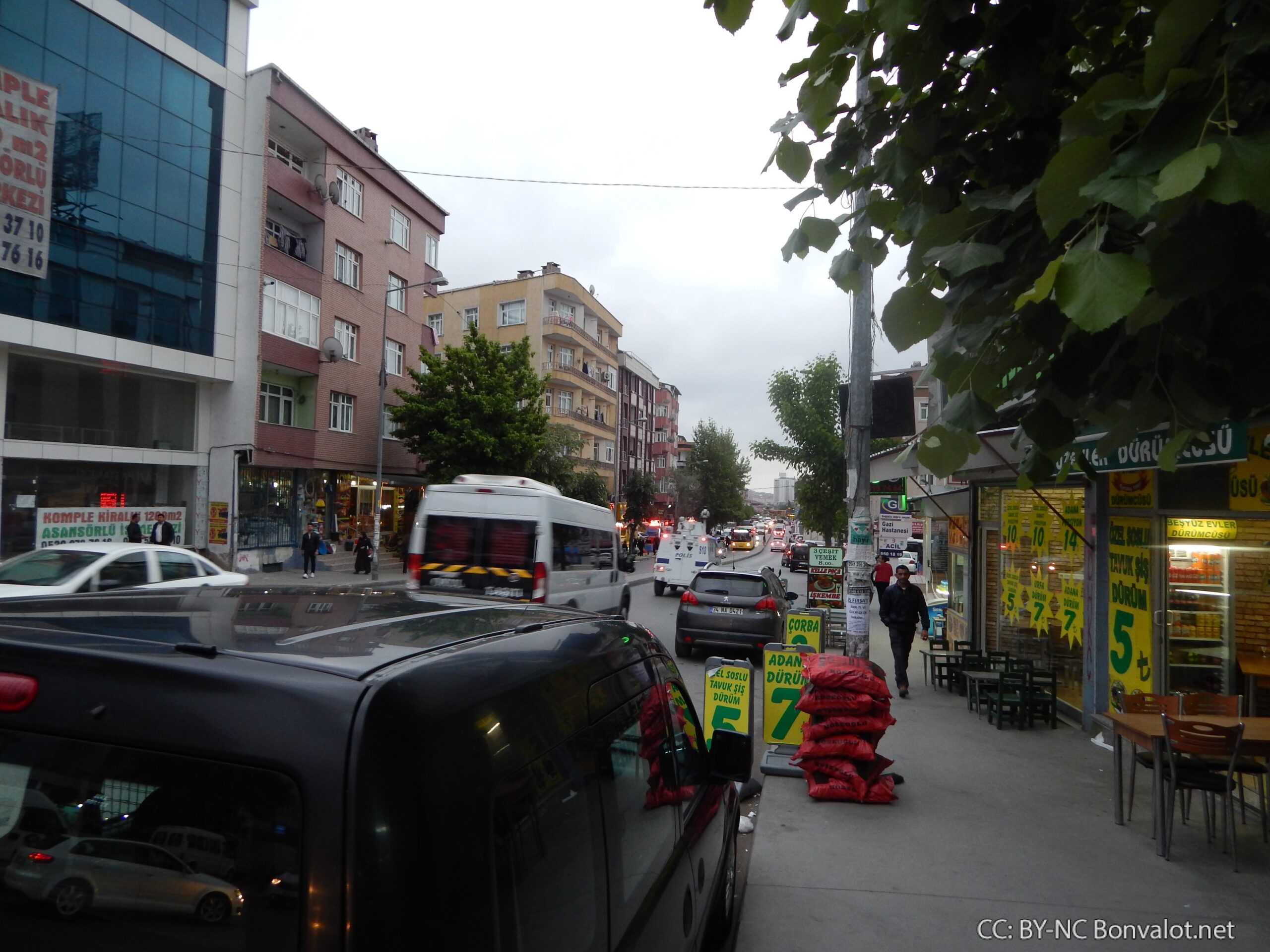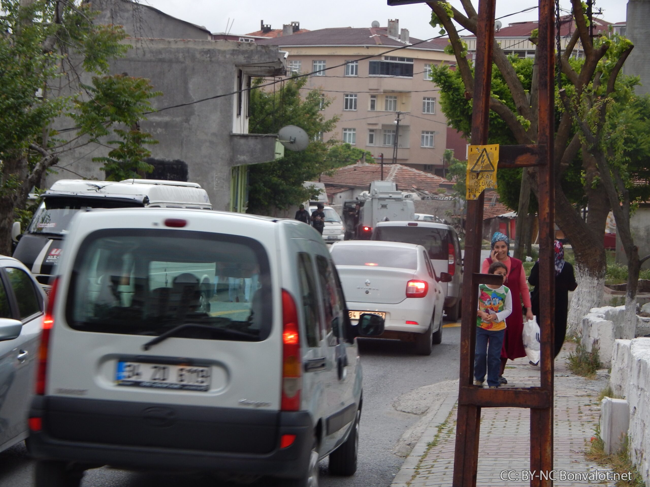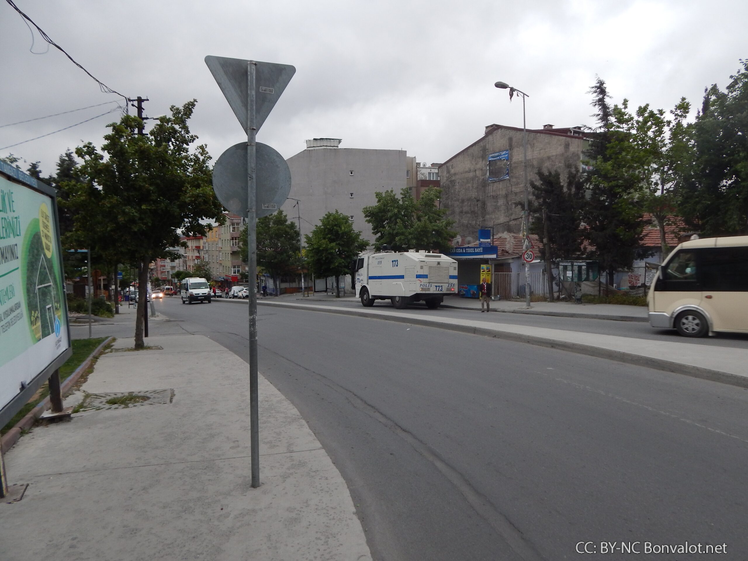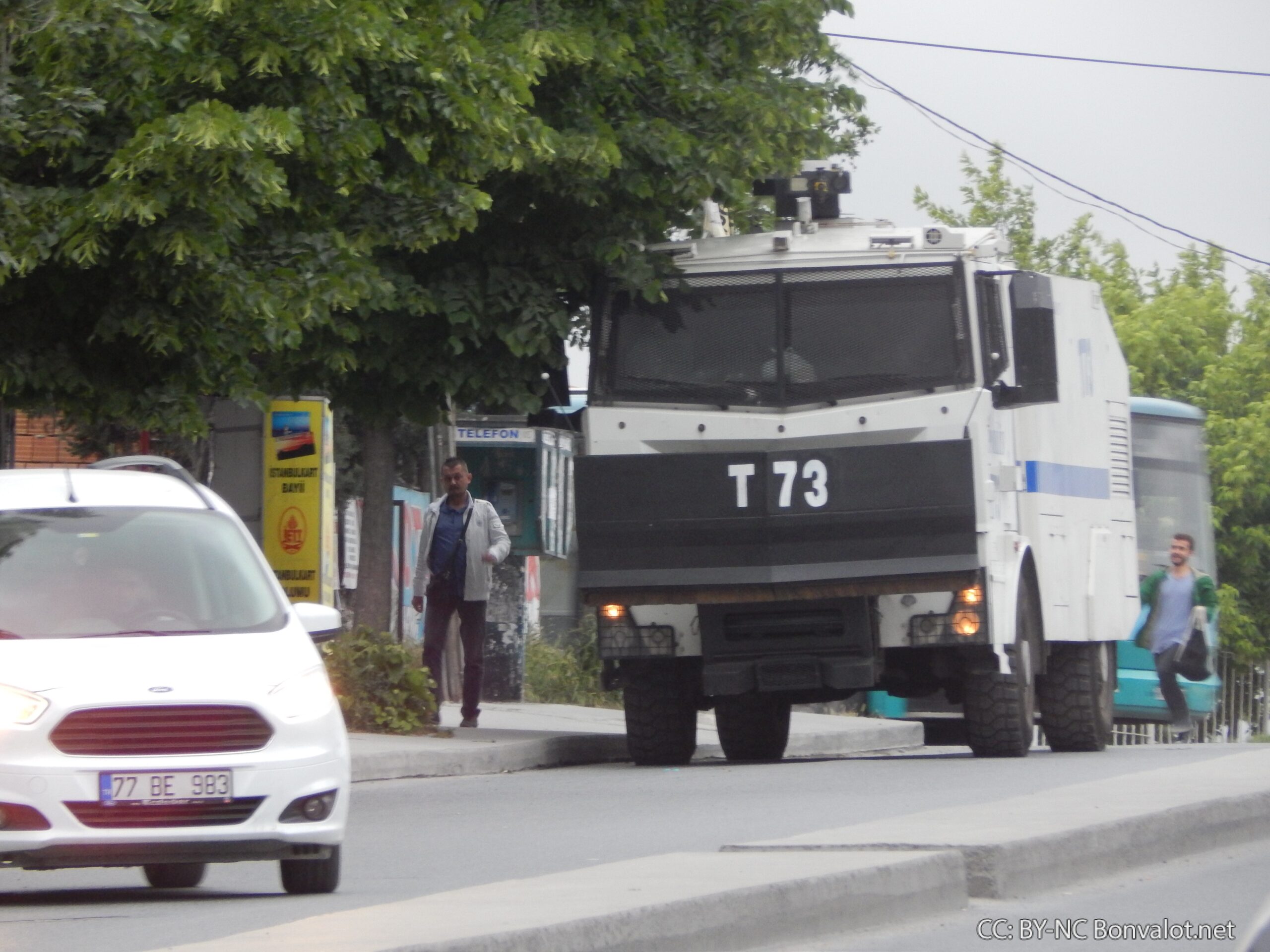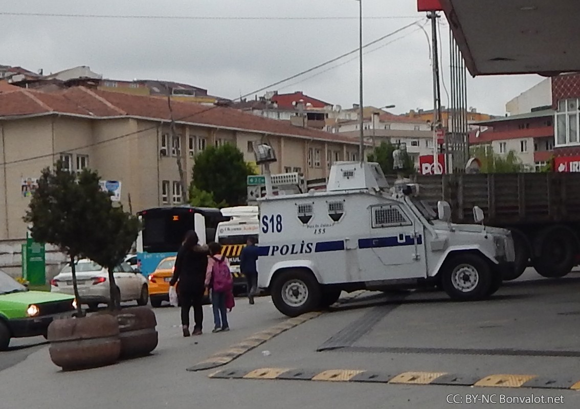 Das türkische Militär bzw. die Polizei sind hier ausschließlich mit gepanzerten Fahrzeugen, etwa Wasserwerfer und Jeeps, präsent. Das scheint auch eine realistische Einschätzung der Lage. Denn es ist keineswegs ausgeschlossen, dass auf die bewaffneten Kräfte des Staates geschossen wird.
