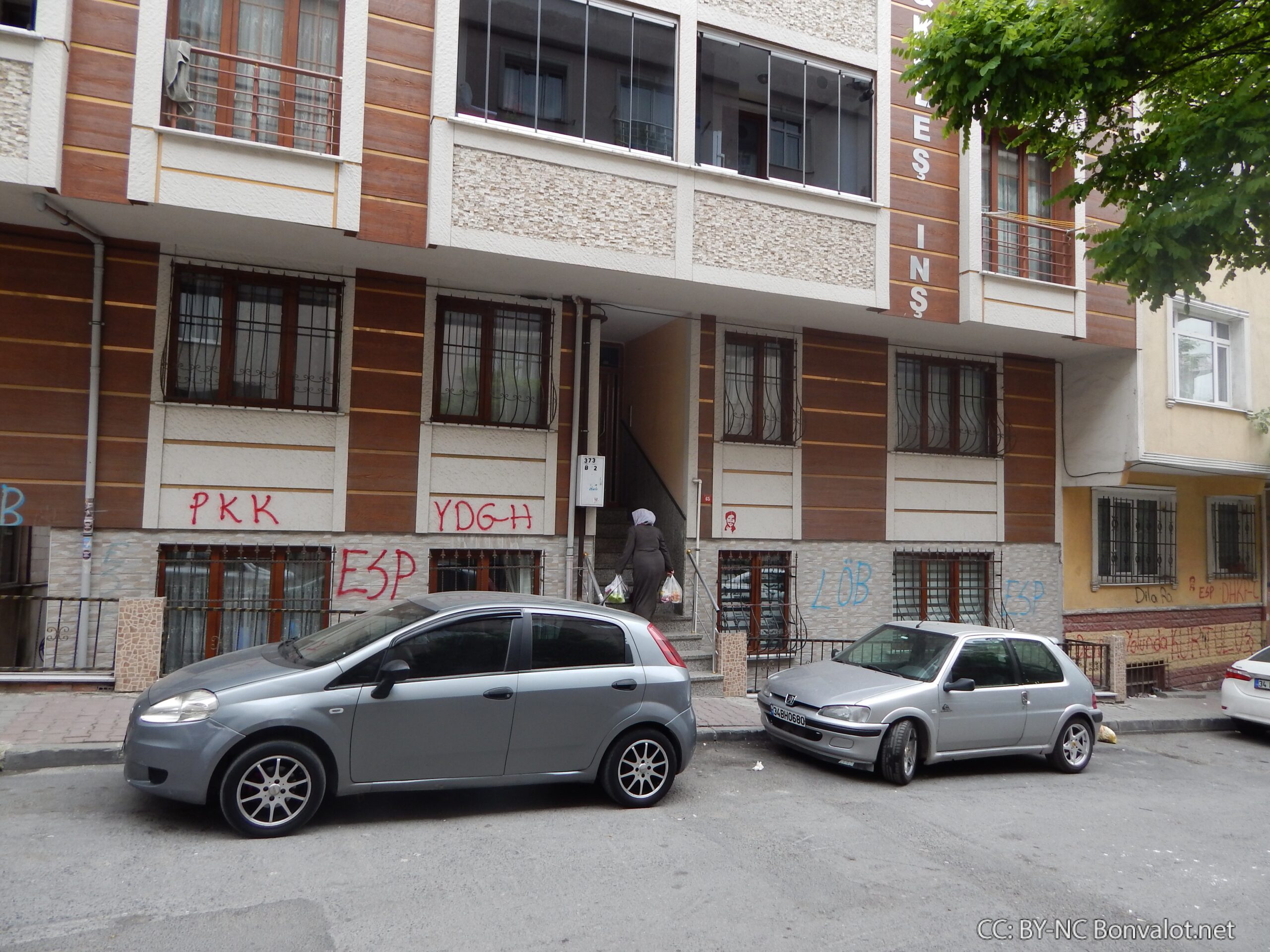 Und es sind vor allem Angehörige der traditionell links stehenden religiösen Minderheit der AlevitInnen sowie der kurdischen Minderheit, die hier leben. An jeder Straßenecke hängen Plakate, stehen Parolen oder die Abkürzungen der verschiedenen Guerilla-Organisationen zu sehen. (Eine kurze Erklärung zu den verschiedenen Abkürzungen findet ihr am Schluss.)